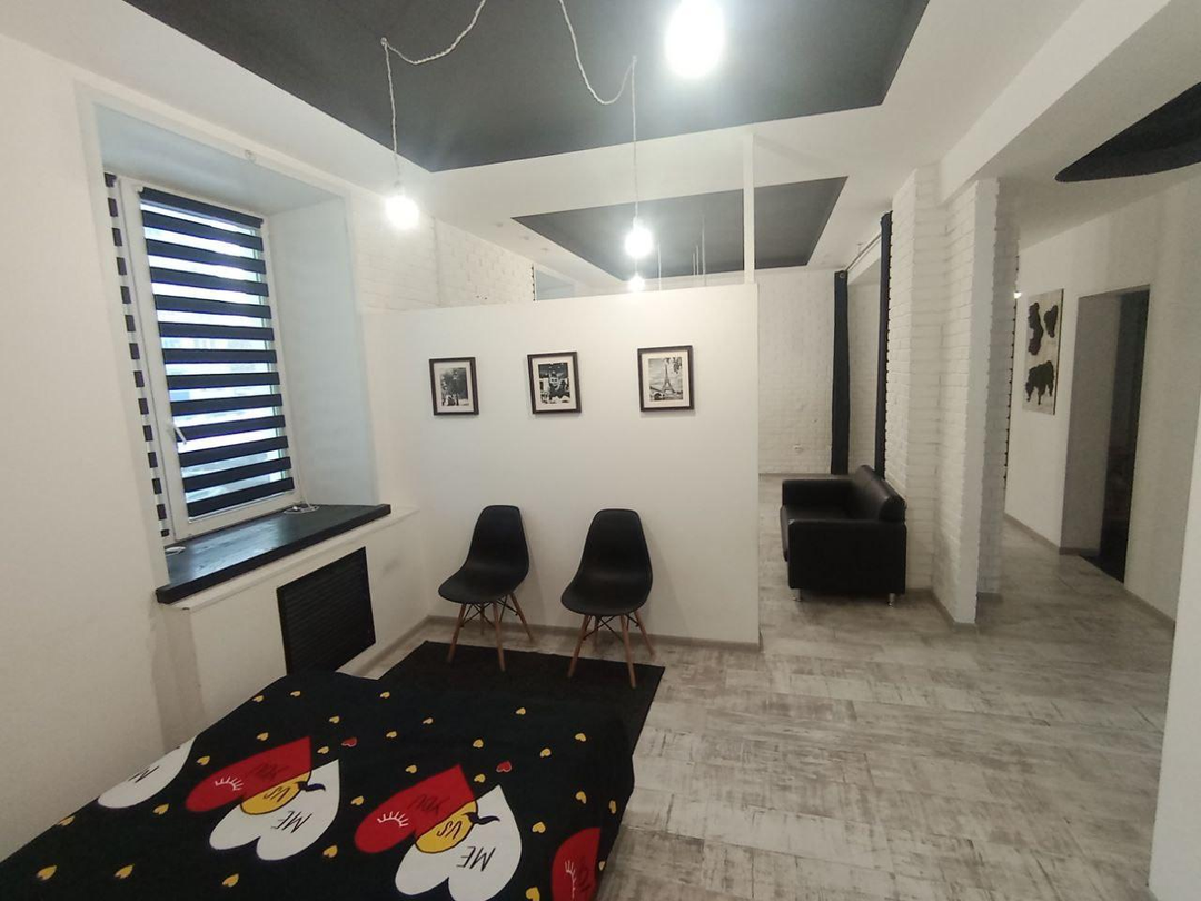 Простор и свет: Высокие потолки и большие окна.