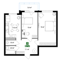 • Количество комнат 2