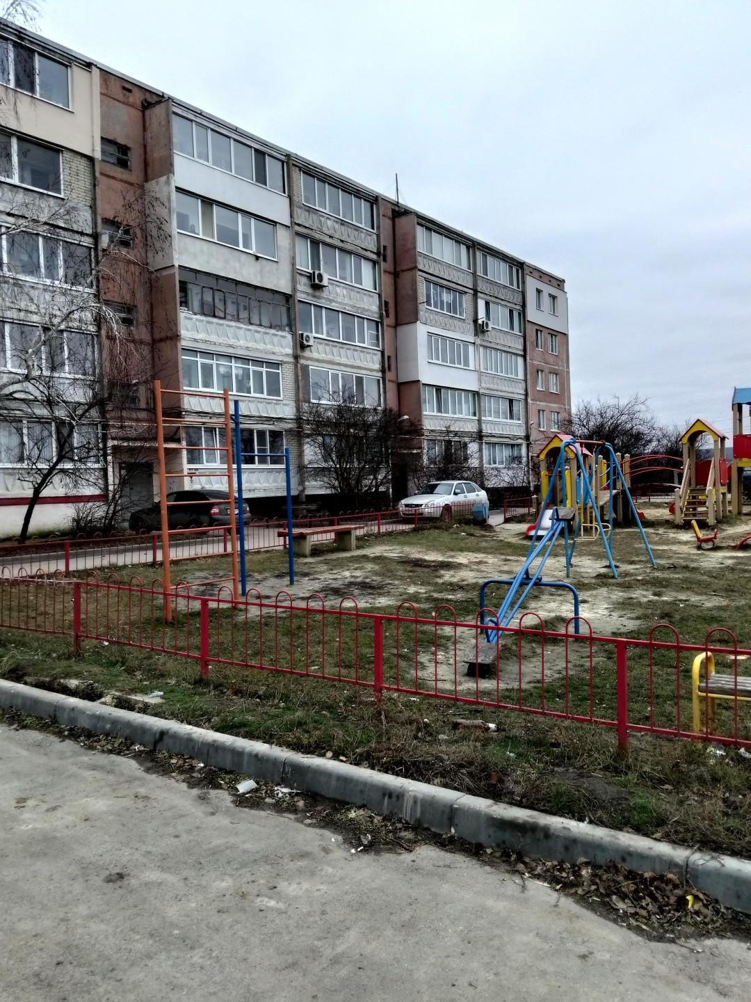 Во дворе дома - детская площадка, уложен новый асфальт, есть парковочные места для автомобиля.