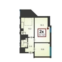 Общая площадь квартиры 50.1 кв.м. Площадь кухни 12.2 кв.м.