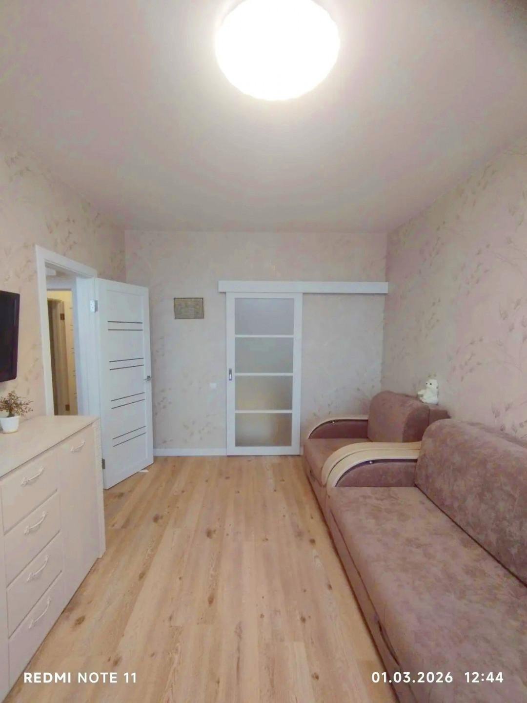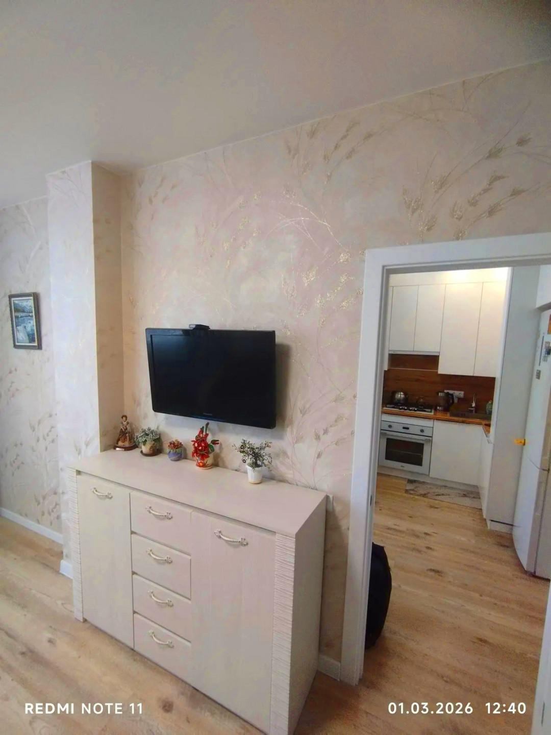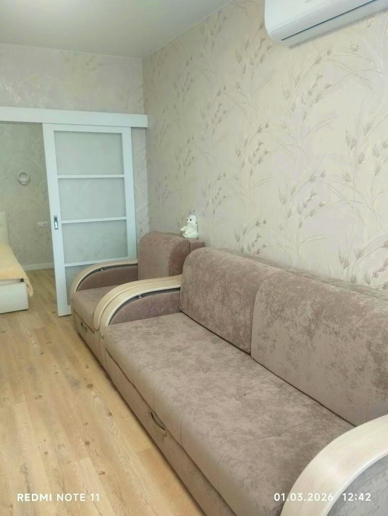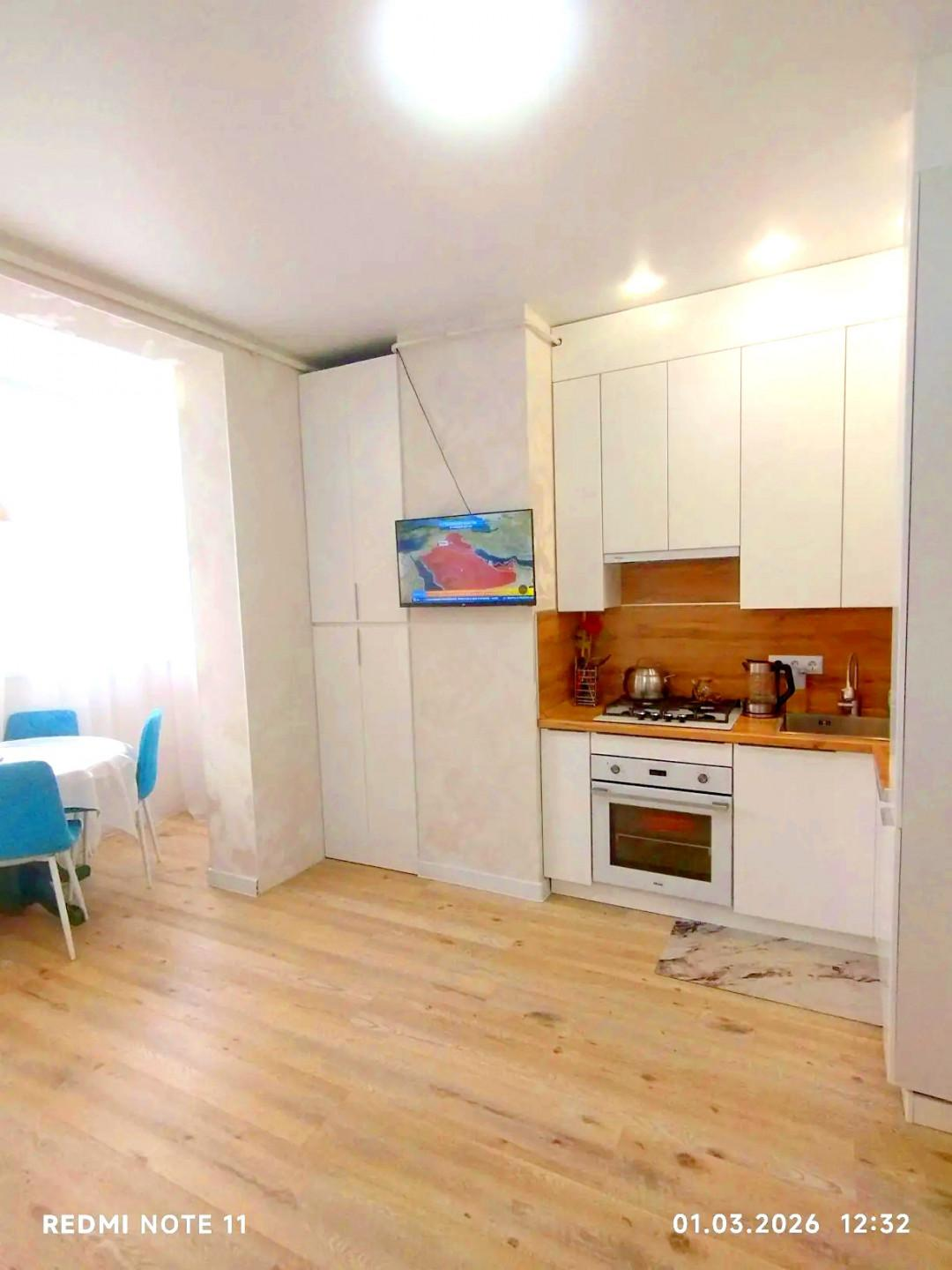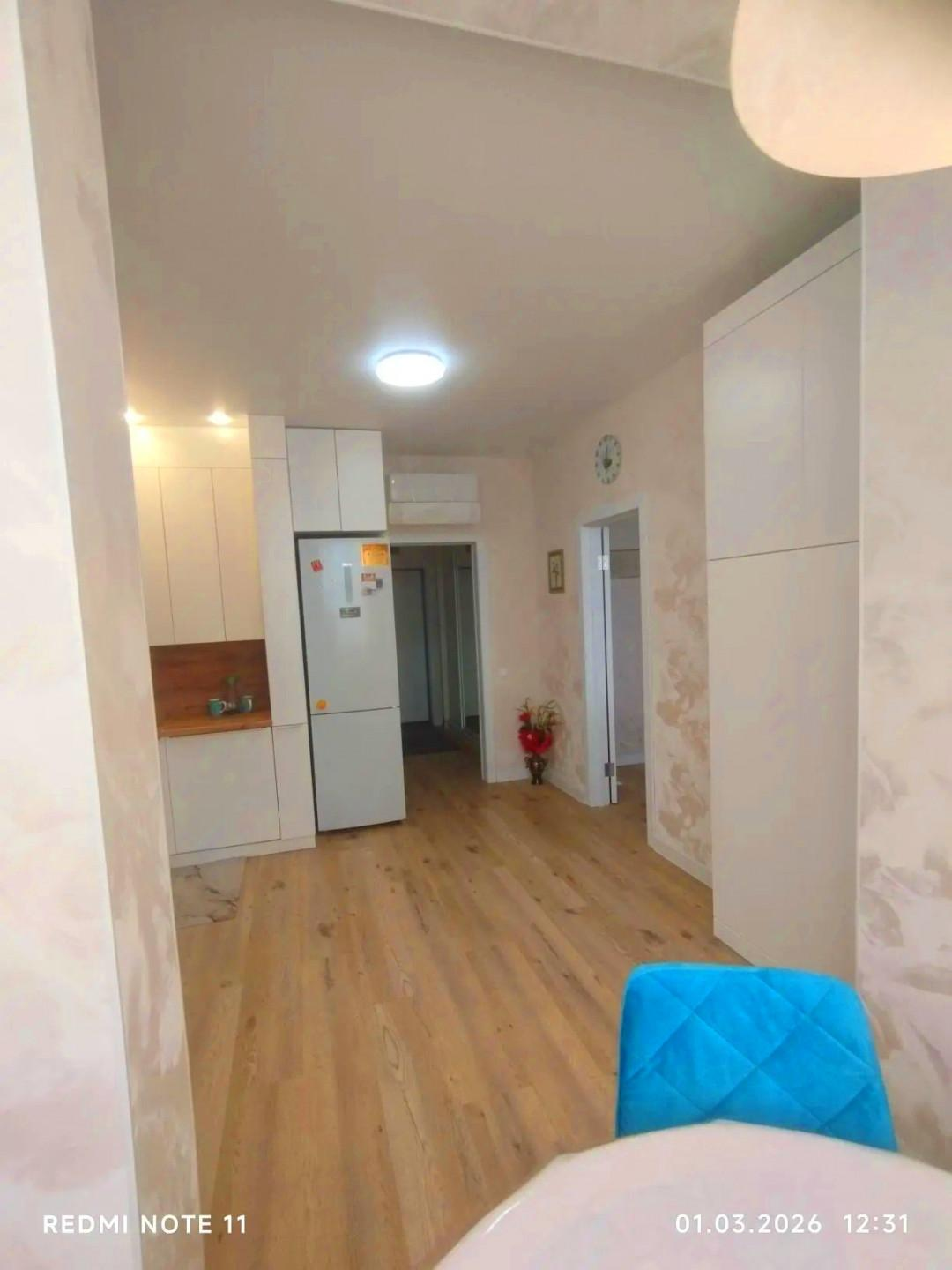 В квартире выполнен евроремонт. В процессе ремонта использовались только качественные и современные материалы. Квартира состоит из двух комнат + просторная кухня гостиная. Теплый пол.