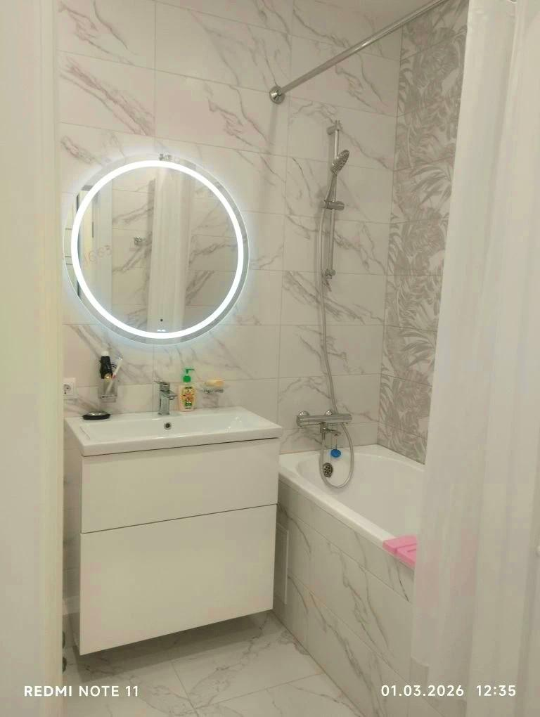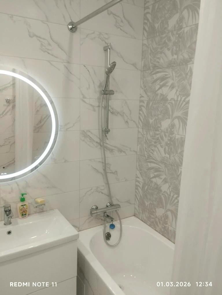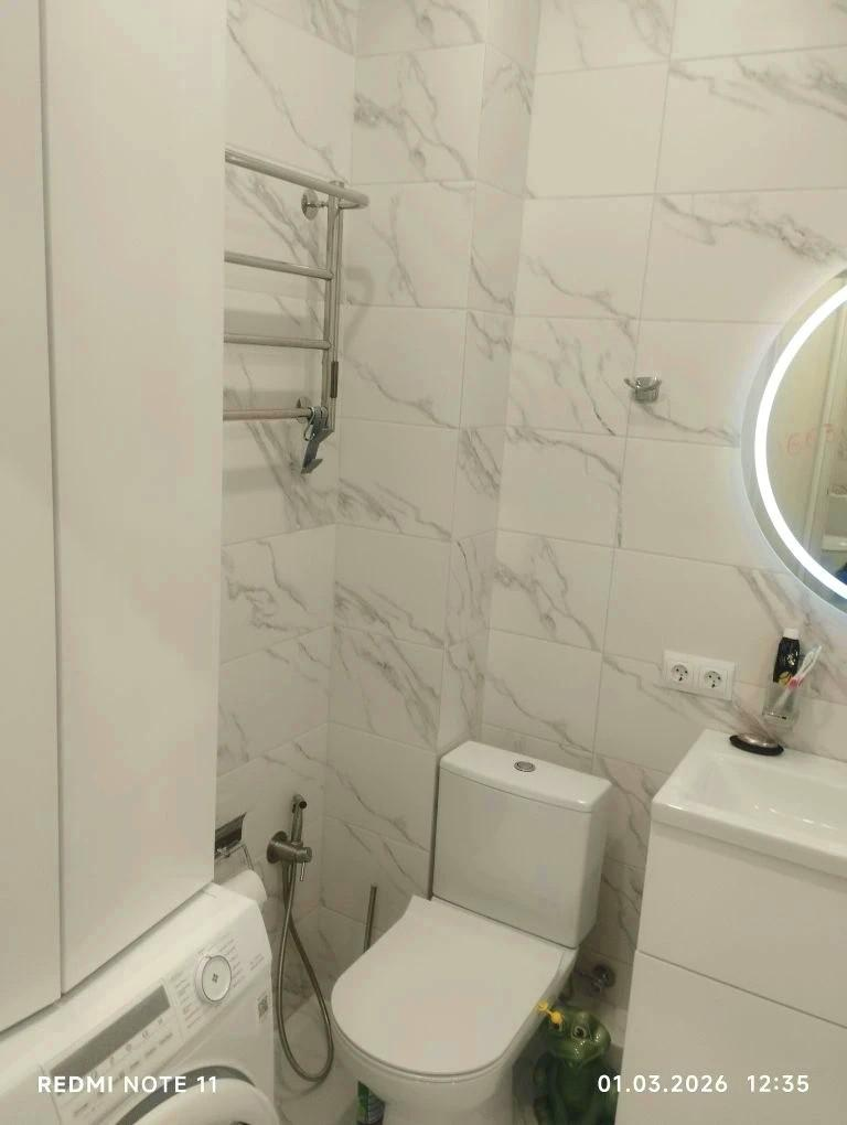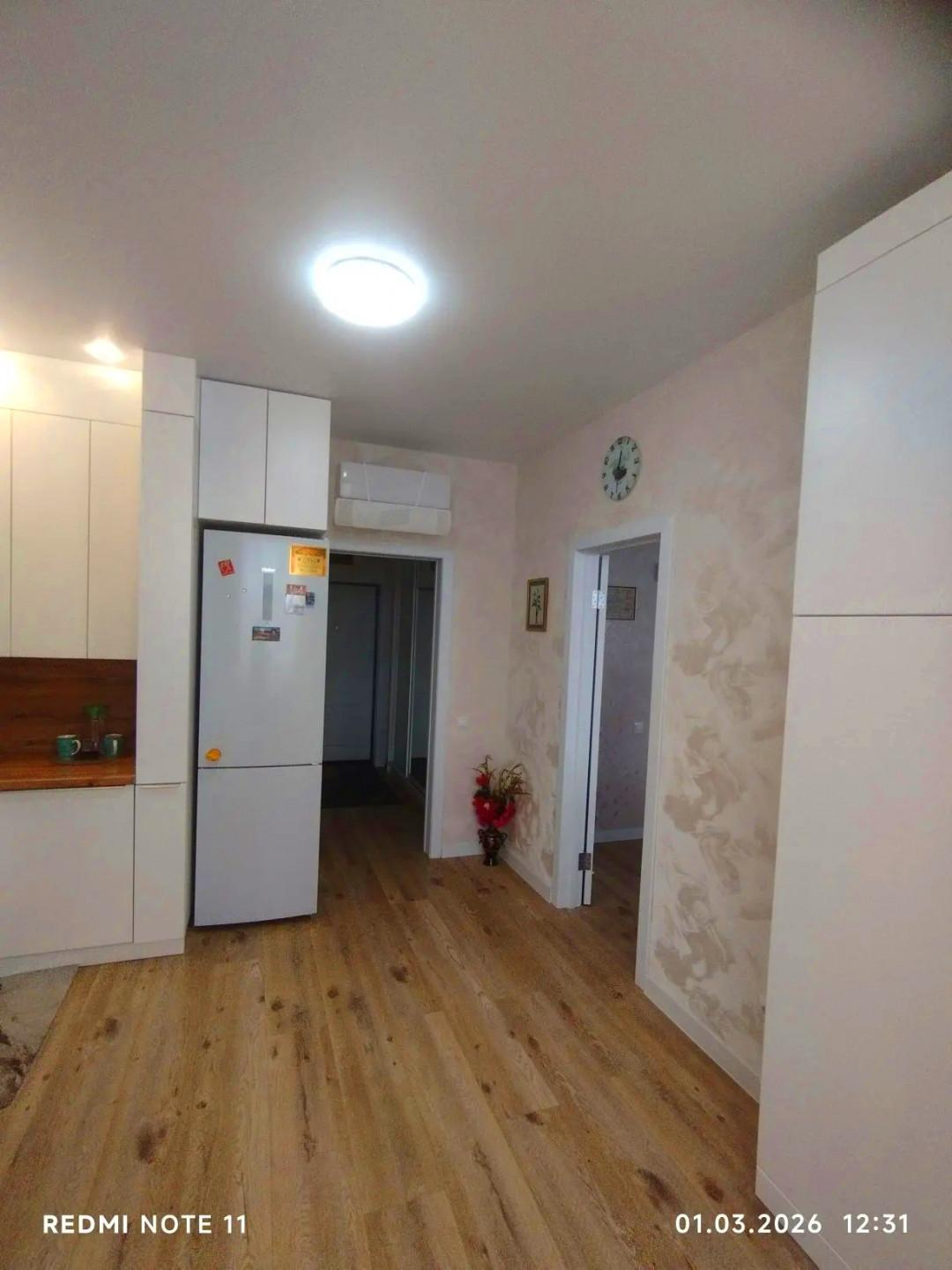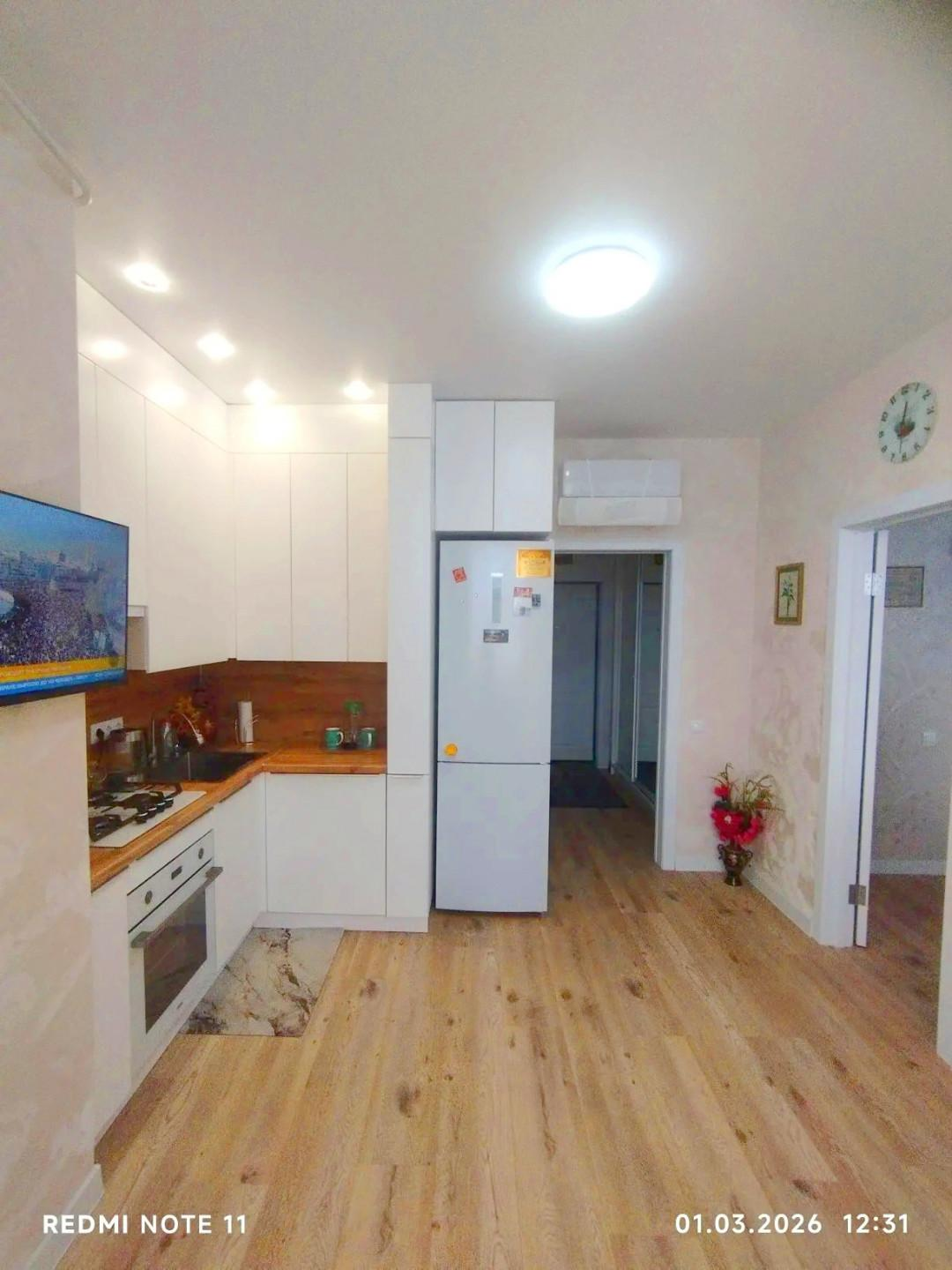 В квартире выполнен евроремонт. В процессе ремонта использовались только качественные и современные материалы. Квартира состоит из двух комнат + просторная кухня гостиная. Теплый пол.