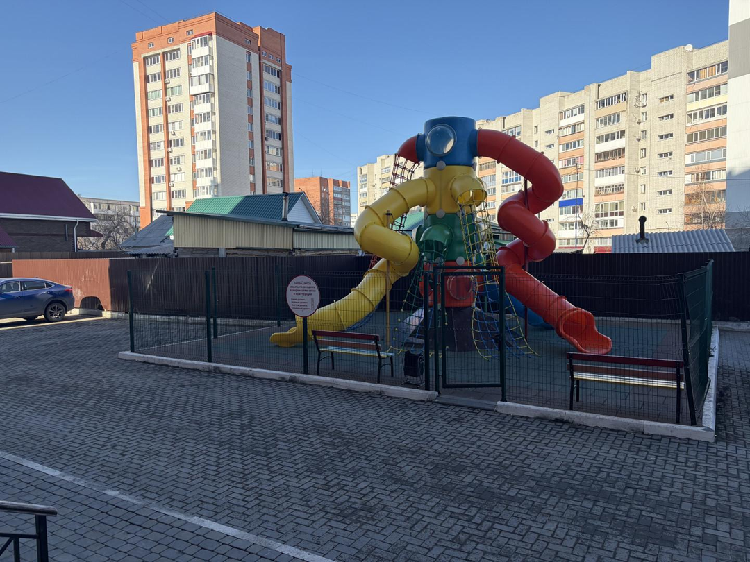 На территории жилого комплекса «Олимп 2» предусмотрены детские игровые и спортивные площадки, обеспечивающие активный досуг для детей и подростков. Озеленение территории создает приятную атмосферу и возможность для коротких прогулок, расслабление или занятие спортом на свежем воздухе.