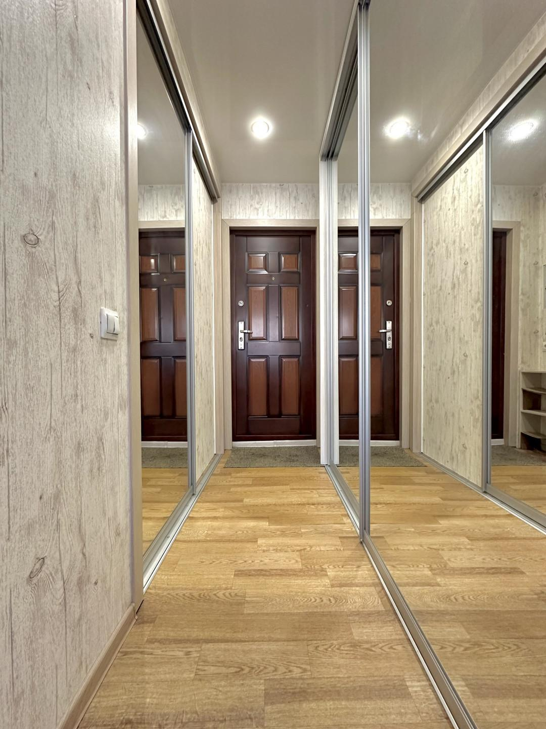 В квартире два больших встроенных шкафа: в прихожей и в спальне, которые остаются в подарок новому хозяину. Остальная мебель по согласованию.