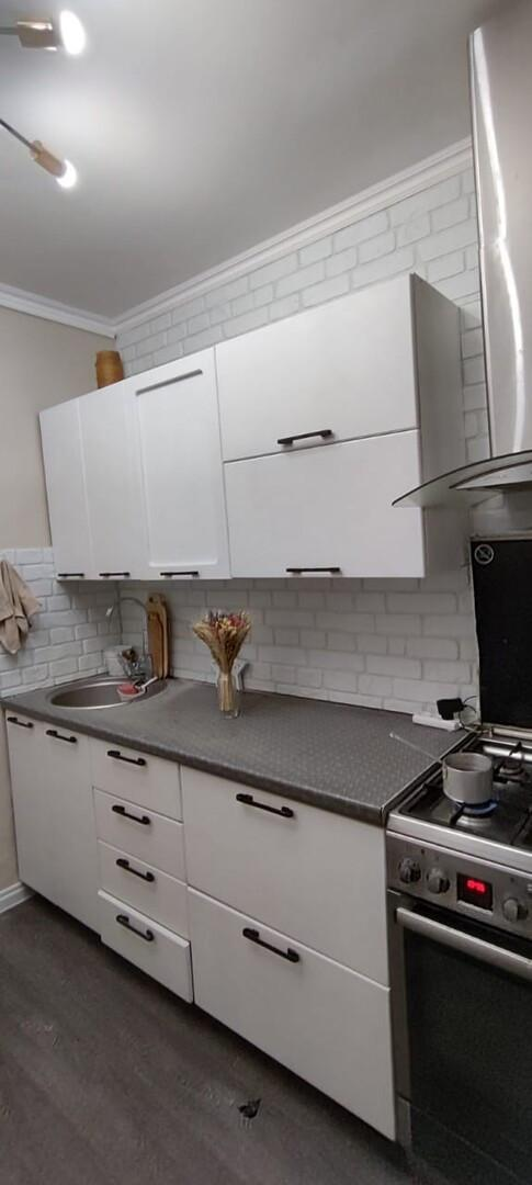В квартире остаётся мебель (кухня , спальный гарнитур , шкафы для хранения) и бытовая техника.