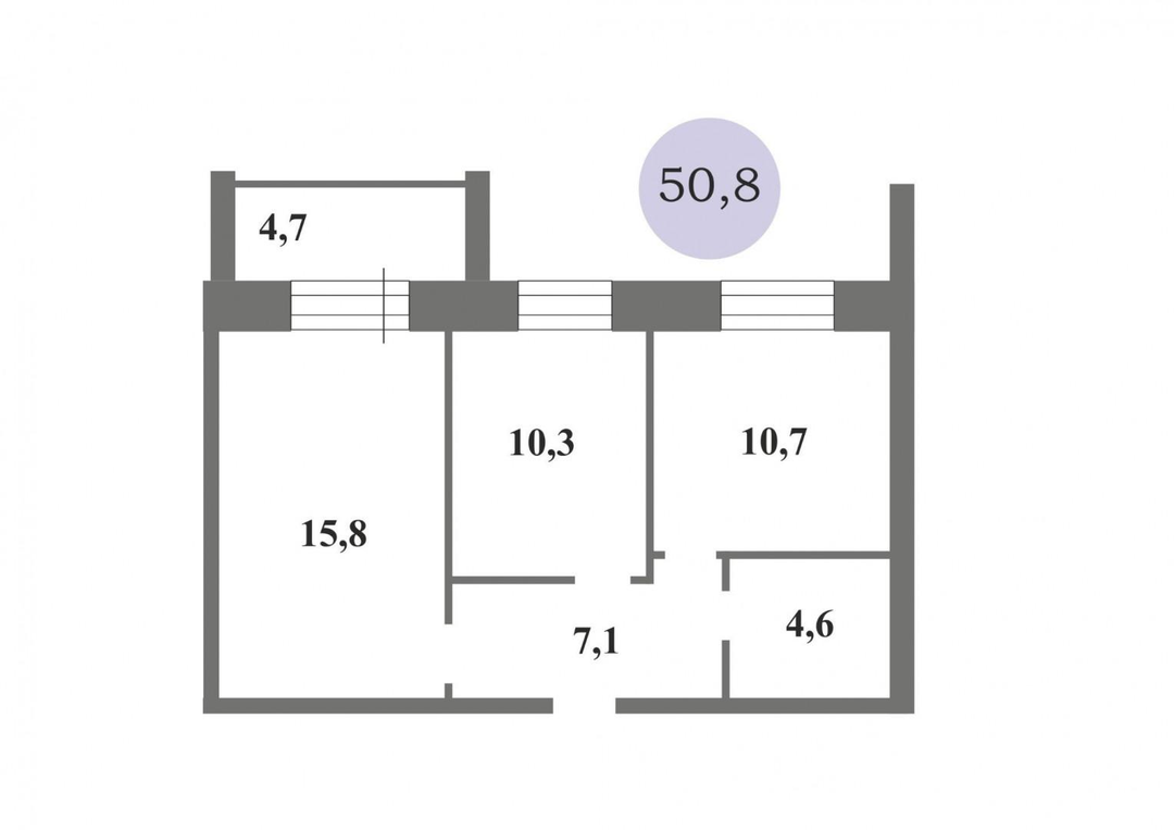Плaниpoвкa включaeт в себя кухню 10,7 кв.м, комнаты 15,8 кв.м и 10,3 кв.м.