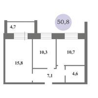 Двухкомнатнaя кваpтиpa площадью 50,8 кв.м.