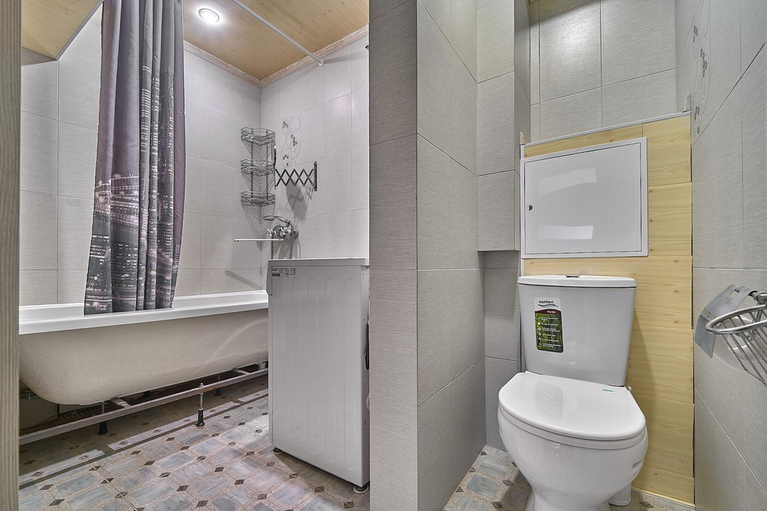 Большой совмещённый санузел — современный и просторный.