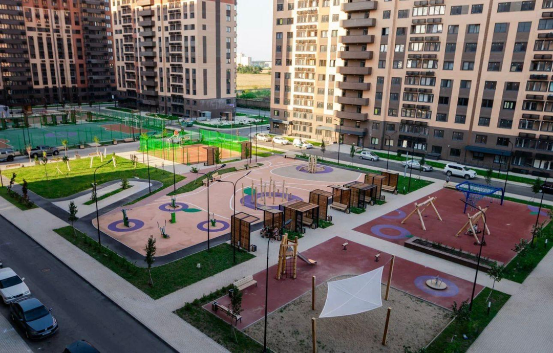 Вся необходимая инфраструктура – в паре шагов: школы, садики, магазины, фитнес-центры, парки и остановки. Всё под рукой для вашей комфортной жизни.