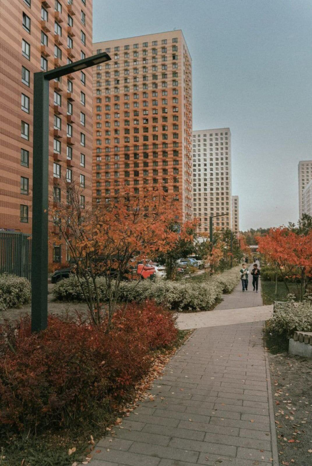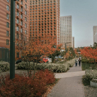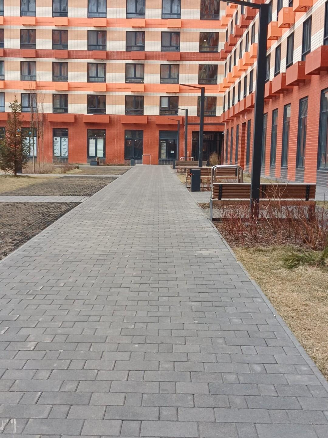 Двор-парк — это приватное пространство жителей: сюда можно попасть из подъезда или через калитку, приложив магнитный ключ, здесь много зелени и нет машин. Площадки для шумных видов спорта, например баскетбола или футбола, расположены с другой стороны домов.