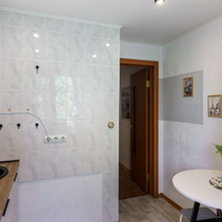 В квартире выполнен ремонт в светлых тонах. В стоимость квартиры входит входная и межкомнатные двери, освещение во всех помещениях с осветительными приборами, кухонный гарнитур с раковиной и смесителем, варочная поверхность, кондиционер (1 шт), унитаз, ванна, раковина.