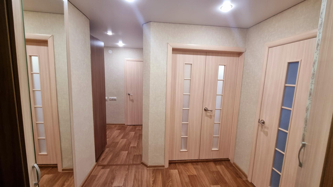 В квартире сделан свежий, современный ремонт с использованием качественных материалов. Натяжные потолки, на полу качественный линолеум, везде поменяны окна ПВХ. Новая проводка.