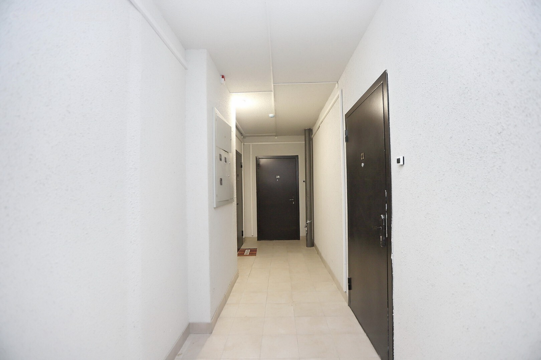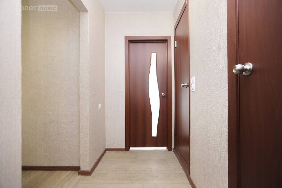 В квартире выполнен косметический ремонт: светлые приятные обои, натяжные потолки, на полу линолеум.