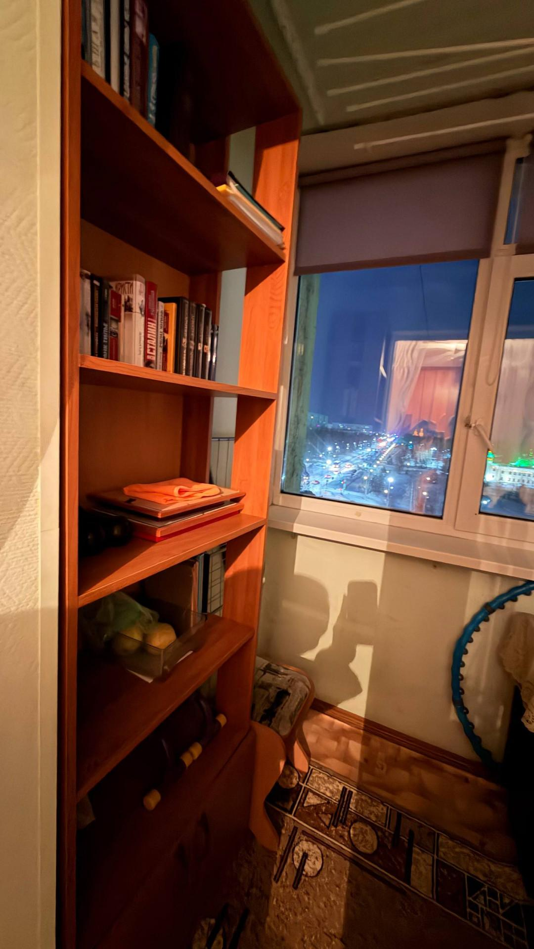 Просторный застекленный балкон — идеальное место для отдыха или хранения.