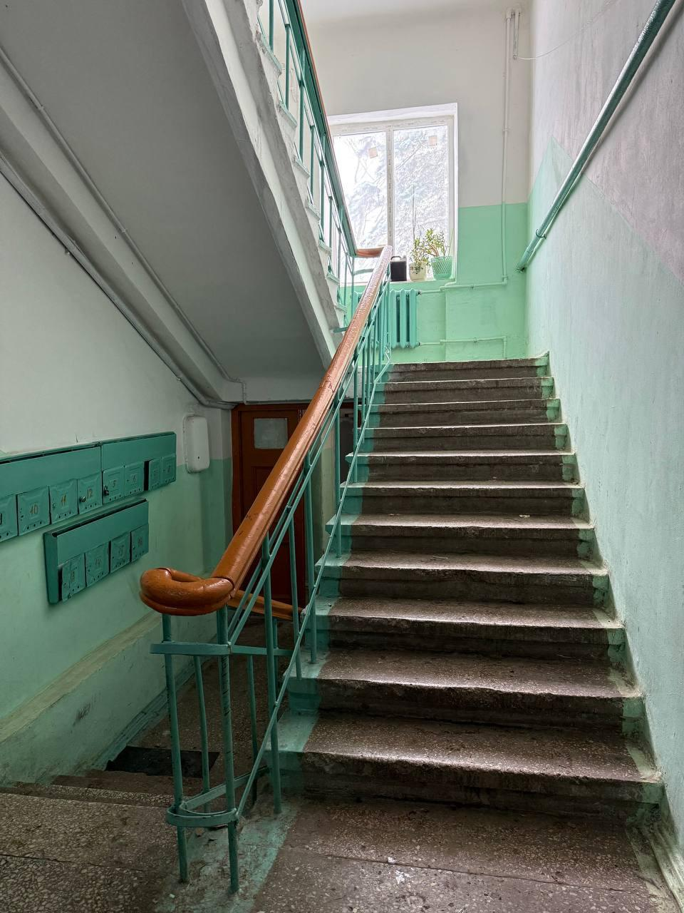 4 этаж (последний), но есть технический этаж. Чистый просторный подъезд с пластиковыми окнами. Тихий двор, парковка напротив подъезда, проблем с местами нет.