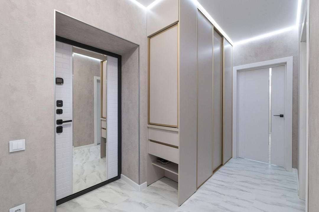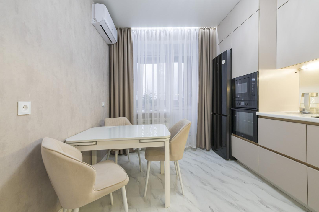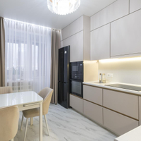 Ремонт выполнен из качественных материалов в светлых и приятных тонах. Квартира очень теплая и светлая.