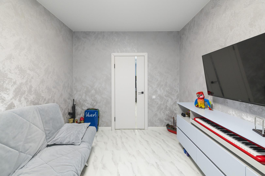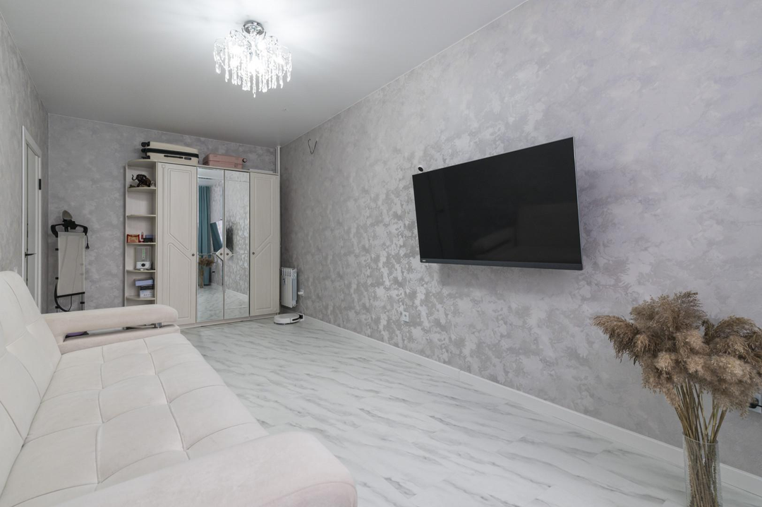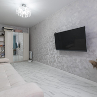 Выполнен очень качественный и продуманный ремонт начиная с черновых работ:стены и пол выровнены;выполнена шумоизоляция потолка, что исключает шум соседей сверху; на полу во всей квартире кварцвиниловая плитка;в с/у пол с подогревом;натяжной матовый потолок во всей квартире;разные сценарии освещения;с/у - керамогранит, дополнительная шумоизоляция труб;качественный межкомнатные и входная дверь.