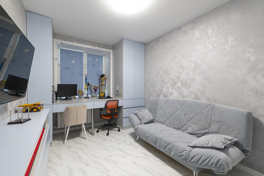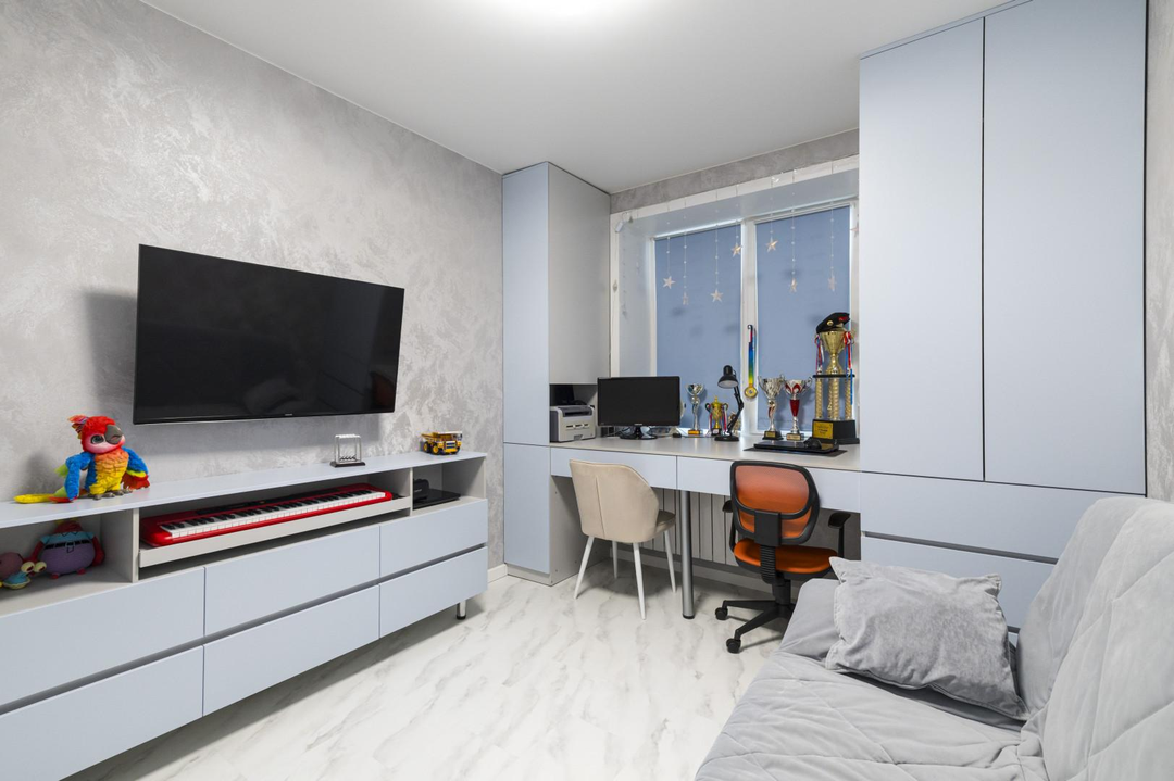 Вся мебель изготовлена на заказ, продумано все, вплоть до мелочей. Квартира практически не требует каких-то дополнительных вложений.