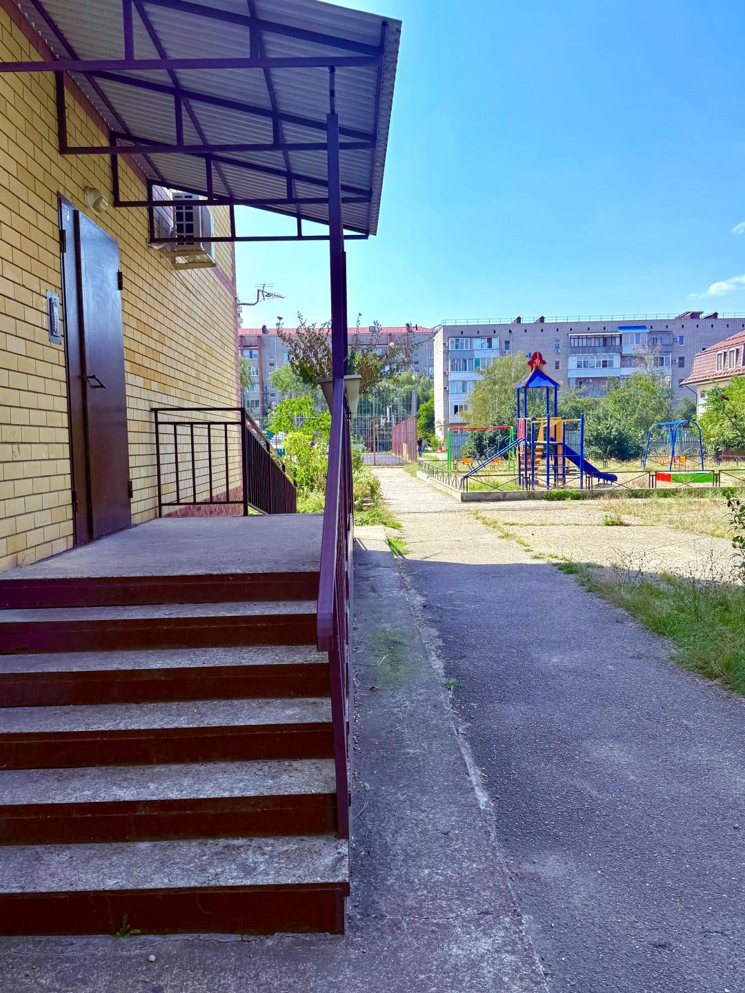 Квартира расположена на первом этаже из трёх, что делает её более камфортной. Входная группа в подъезде чистая и аккуратная, минимальное количество ступеней, имеется пандус с удобным подъёмом.