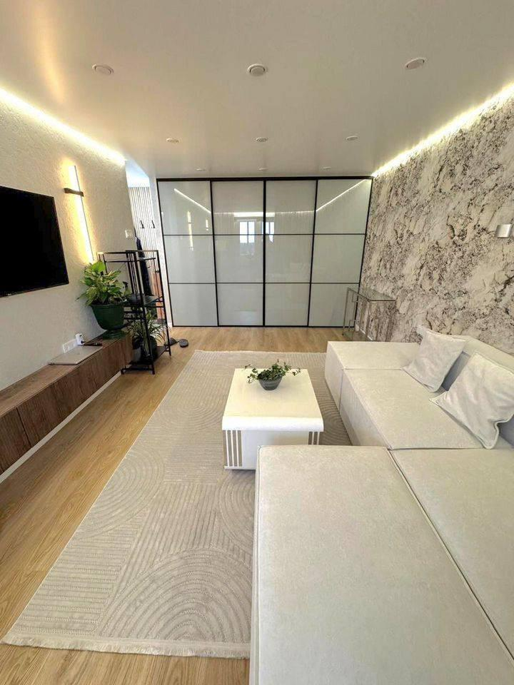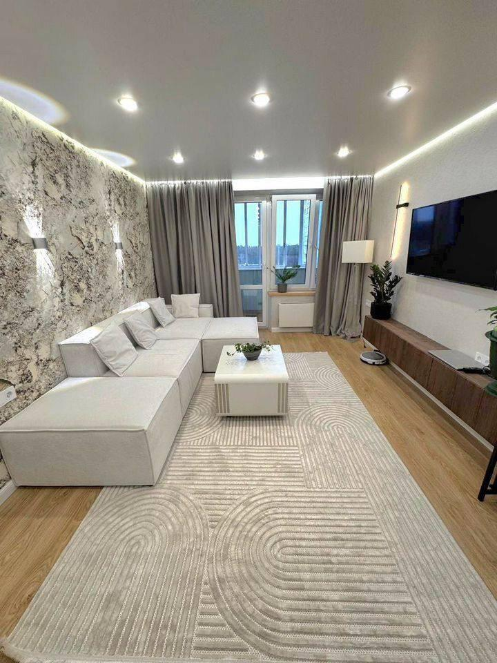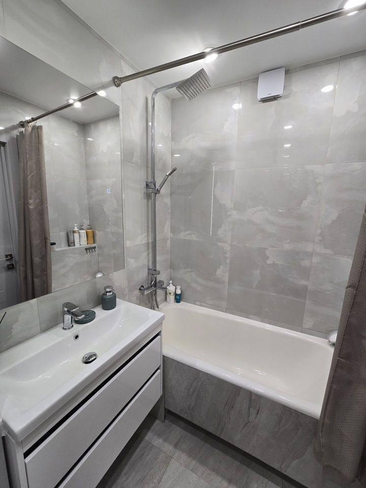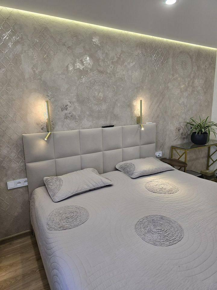 *Полный евроремонт с дизайнерской штукатуркой, теплыми полами (керамогранит), встроенной мебелью и техникой