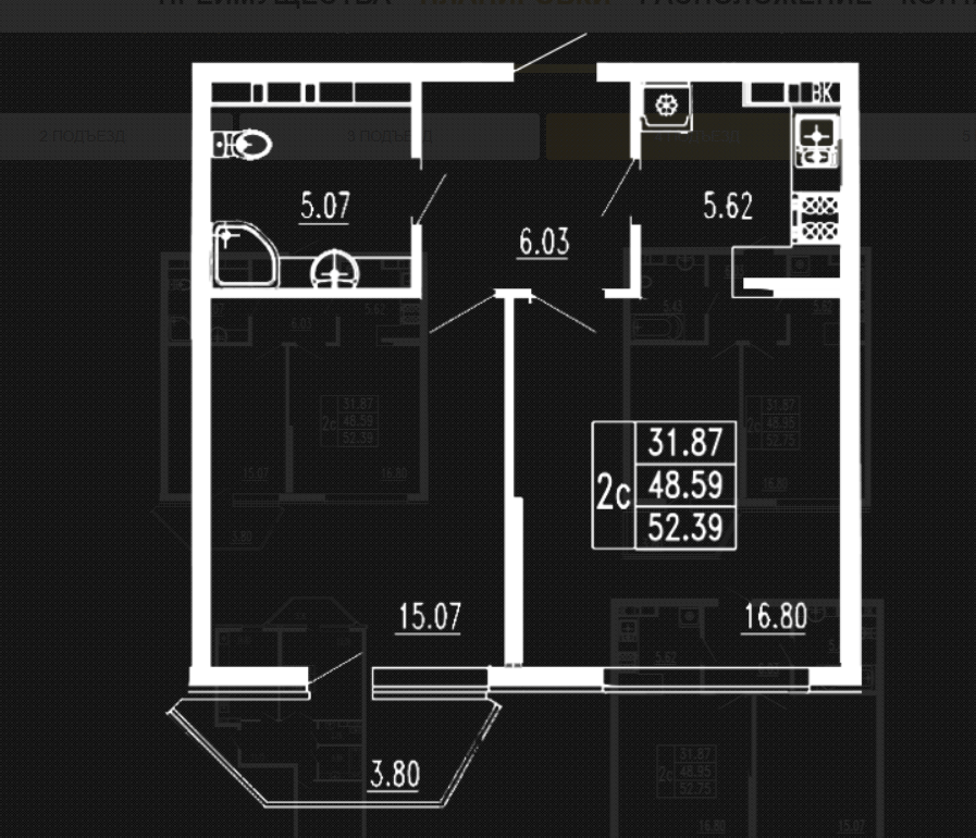 Видовая 2-к. квартира в ЖК бизнес-класса "Консул" общей площадью 53 м2, этаж 9/14.