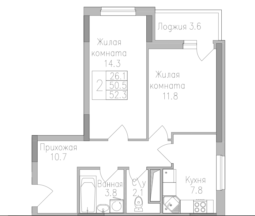 Самая удачная и удобная планировка квартиры (52,3м2; зал 14,3 м2, 11,8М2 с выходом на лоджию (6,8 м2) ;кухня 7,8 м2 ,Санузел раздельный.