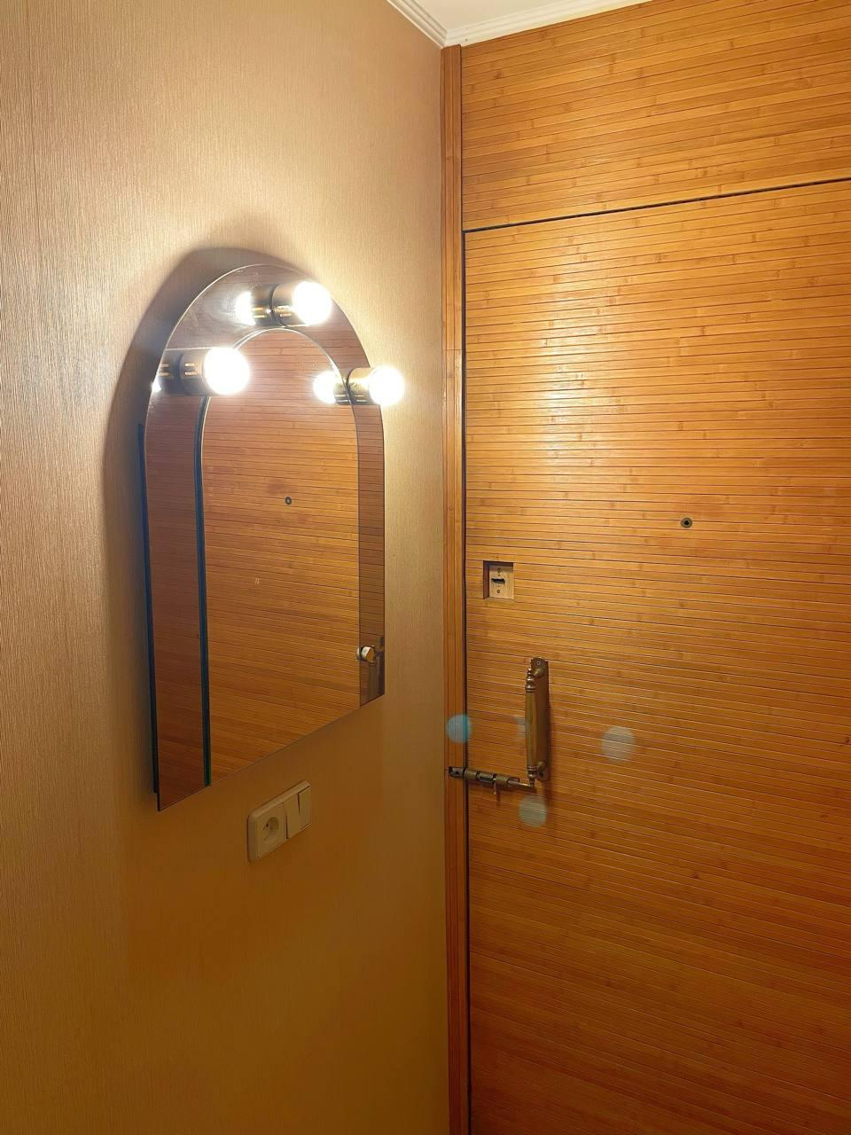 Отопление автономное — через чугунные батареи, не привязанные к общему стояку. Металлическая дверь обшита деревом, создавая дополнительную защиту и уют.