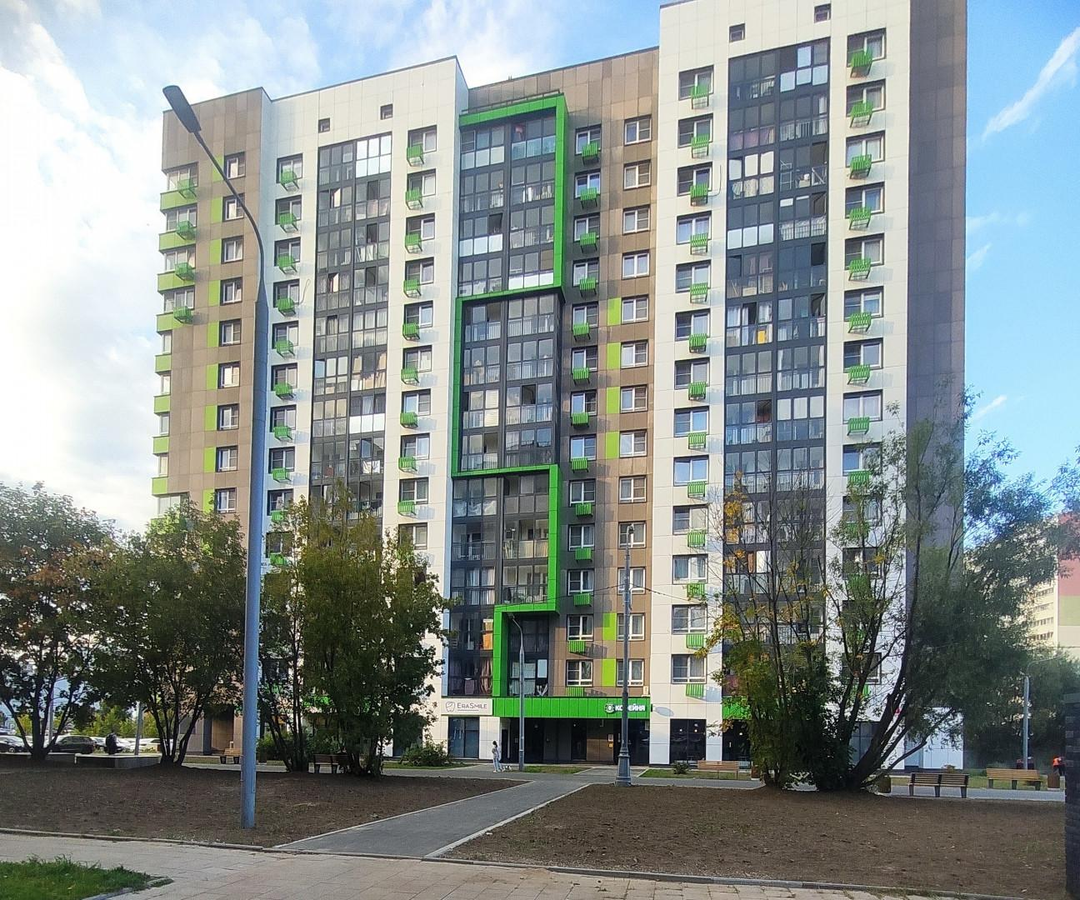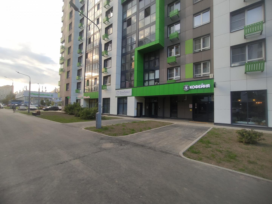Поблизости несколько продуктовых магазинов ("ВкусВилл", "Пятерочка", "Перересток", "Магнит"), аптеки, салоны красоты, ТЦ «Семейный» у дома, ТЦ "Иридиум" в 7 минутах ходьбы