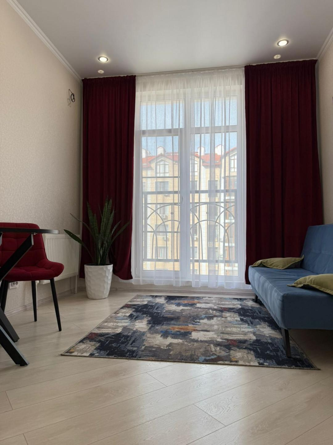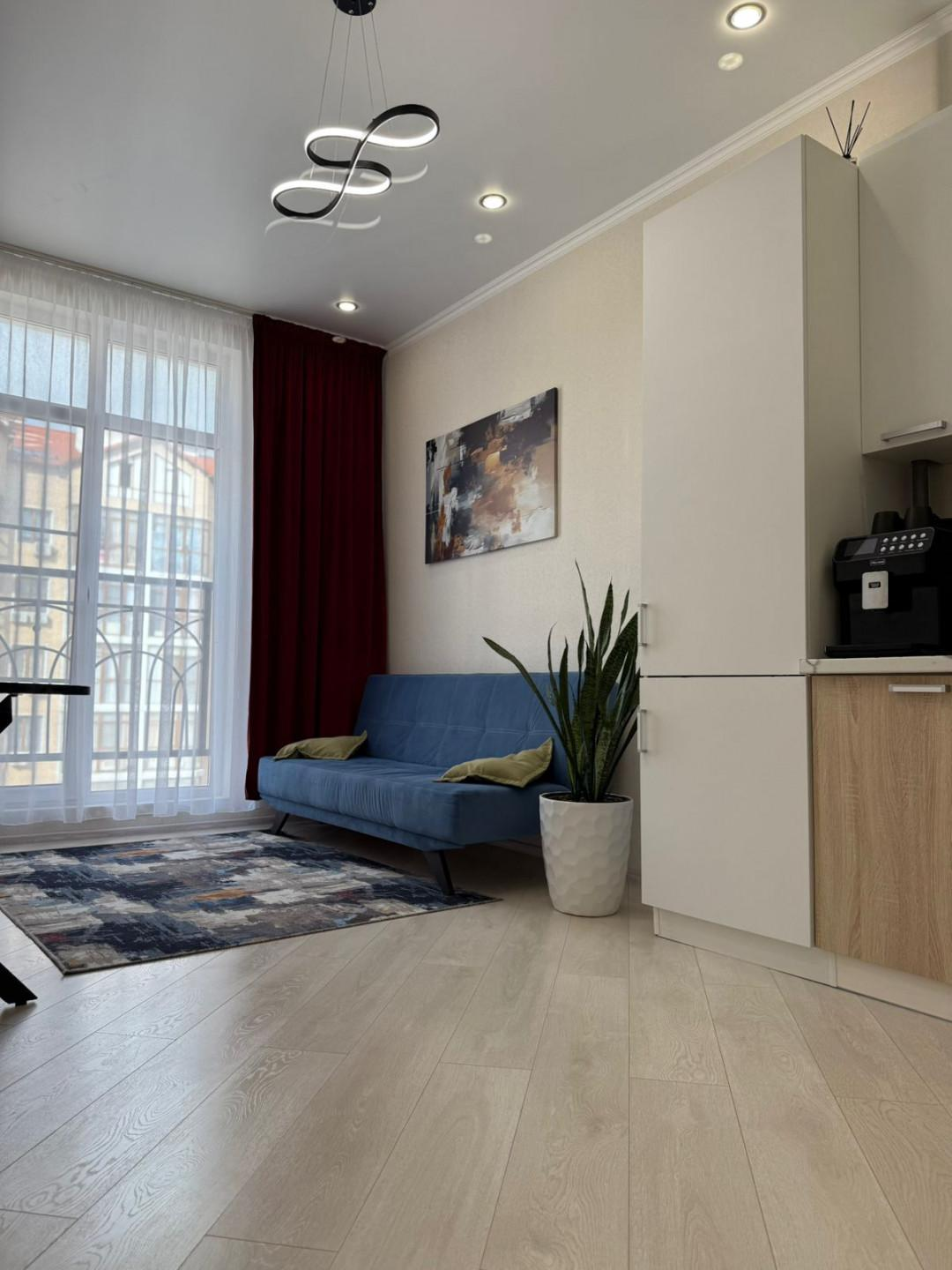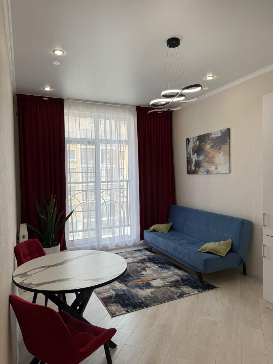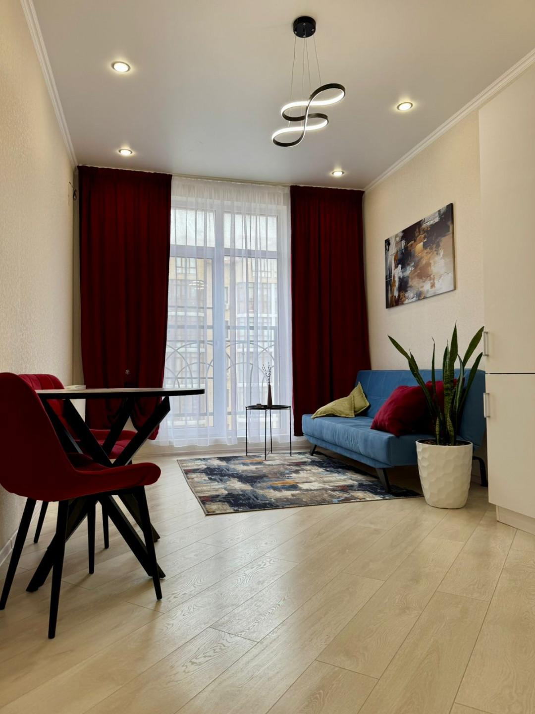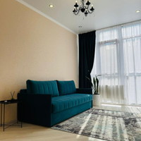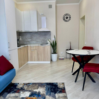 Квартира имеет евроремонт, выполненный из качественных материалов. В комнате установлен кондиционер, что позволяет поддерживать комфортную температуру в любое время года. На кухне установлена современная техника, включая холодильник, вытяжку и плиту. Ванная комната оборудована ванной и стиральной машиной.