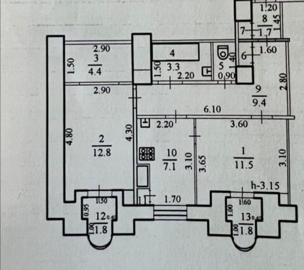 Кухня- 7.1 кв.м.