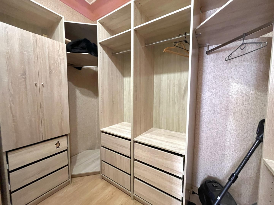 Зал- 12.8 к.м. + гардеробная 4.4+ на другой стороне балкон 1.8 кв.