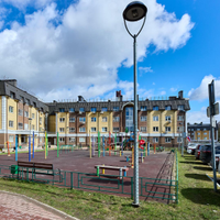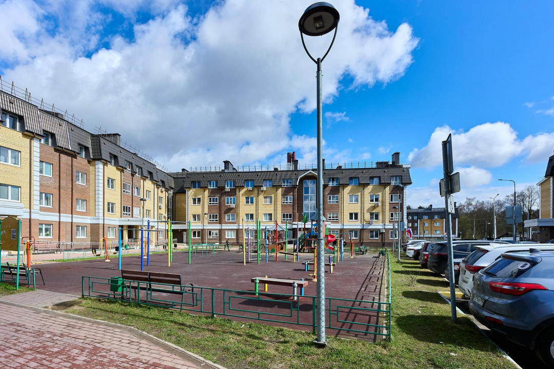 Для активной жизни: Во дворе обустроена современная спортивная площадка.