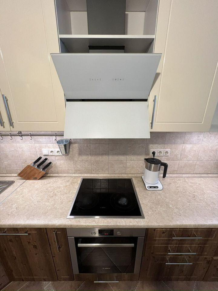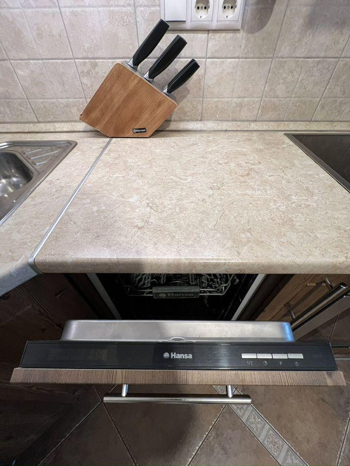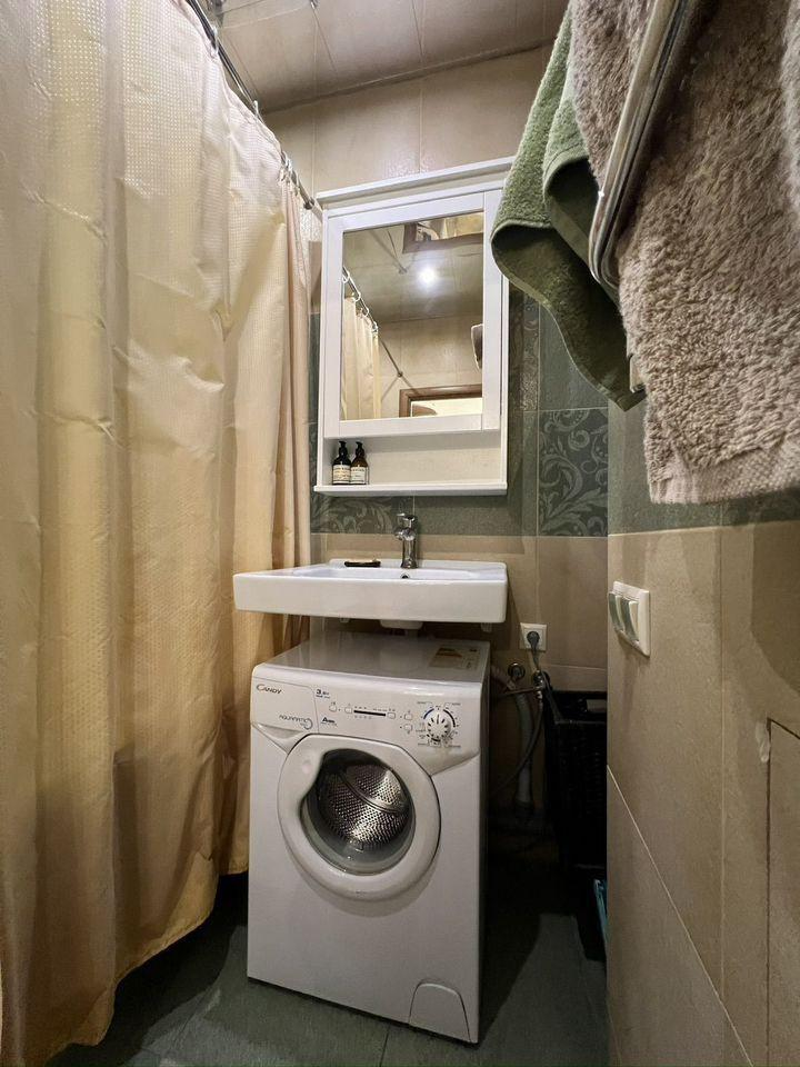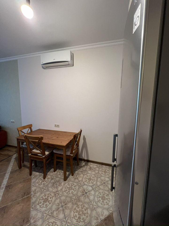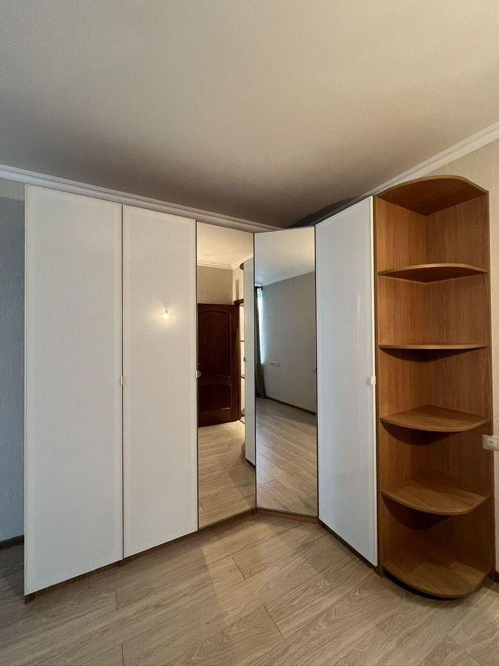 В квартире остается мебель и техника: шкафы в прихожей — IKEA, шкаф в спальне — IKEA, стол и стулья — IKEA, тумбочка под телевизор — IKEA, кровать с матрасом — Askona, диван — «8 марта», холодильник — LG, духовка и варочная панель — Bosch, посудомоечная машина — Hansa, телевизор — Samsung, кондиционер — Ballu, кухонный гарнитур со встроенной вытяжкой.