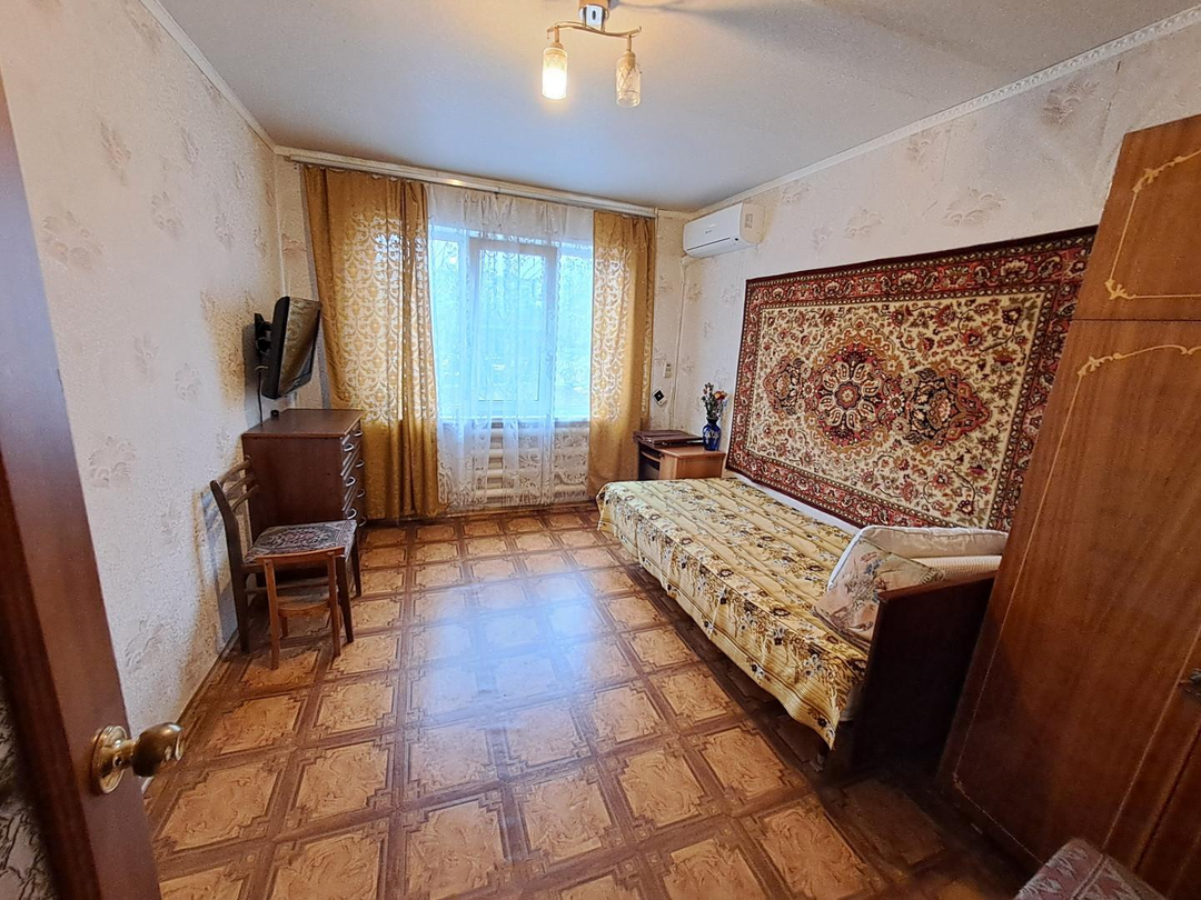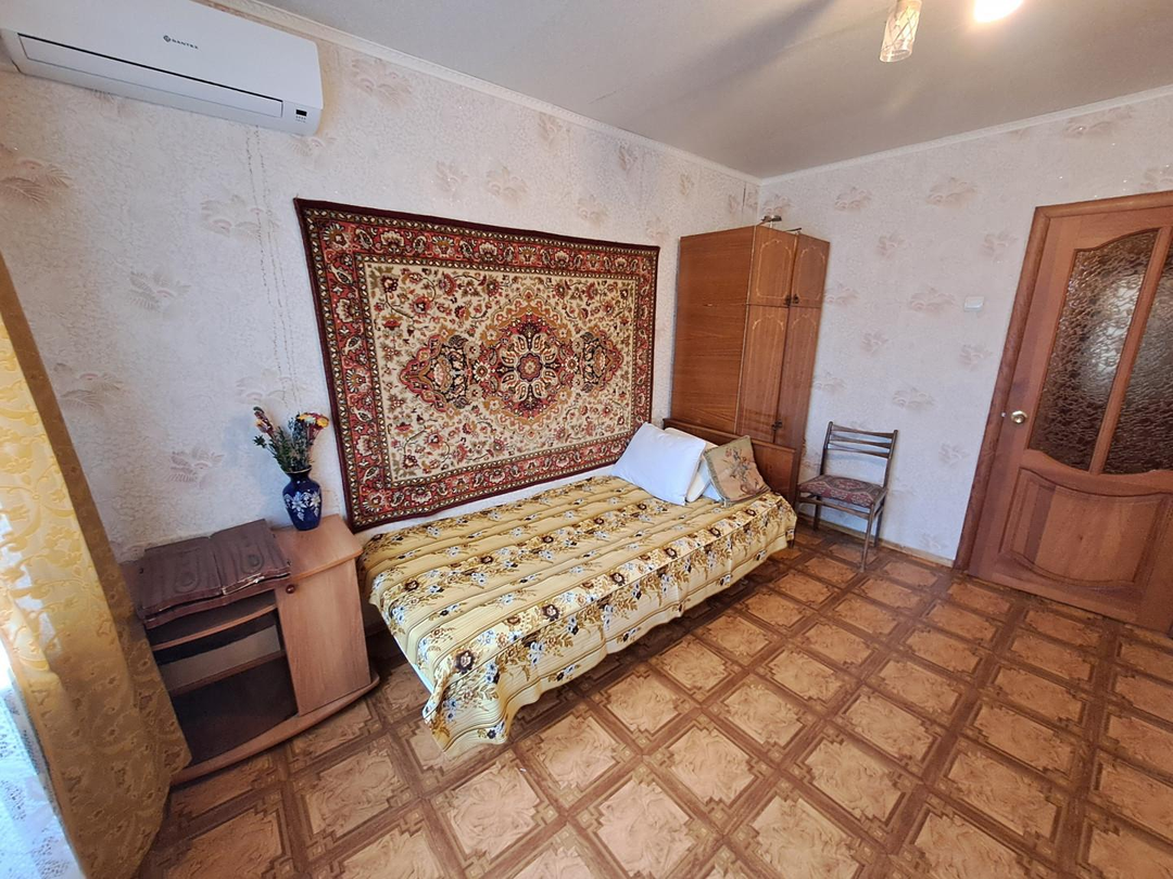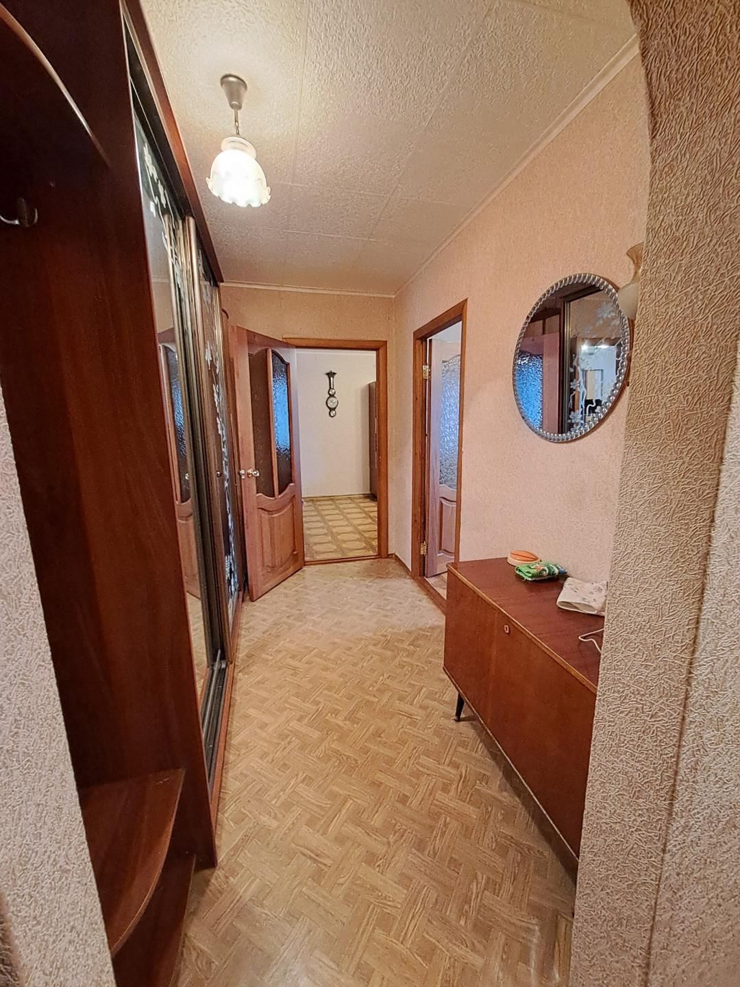 Из мебели и техника остаются: кухонный гарнитур, газовая плита, стиральная машина, кровать, маленький телевизор, большой вместительный шкаф в коридоре, стенка, комод, раскладной диван, два кресла, кондиционер.