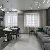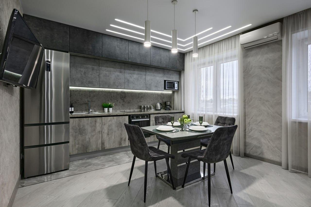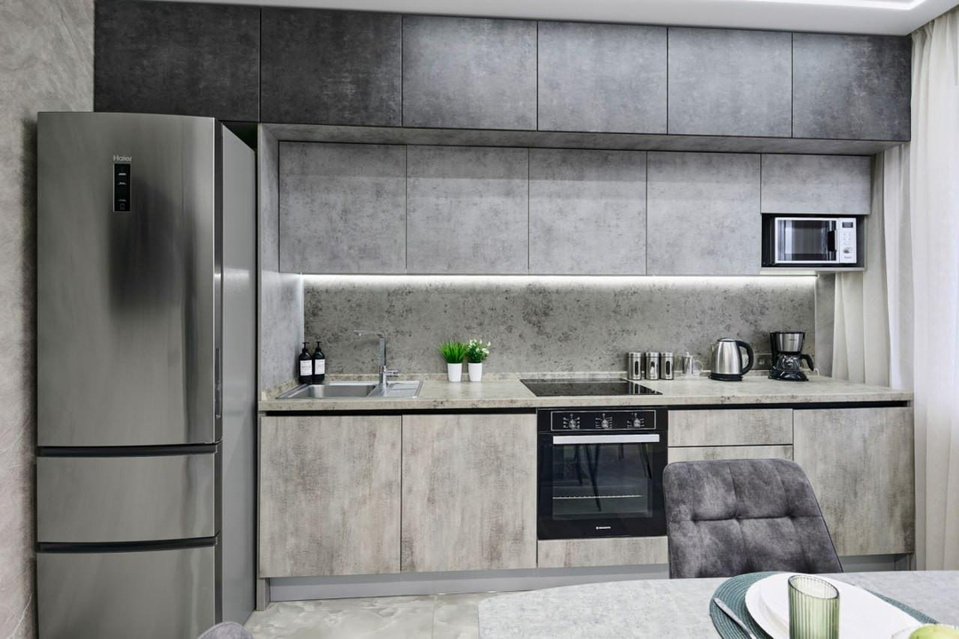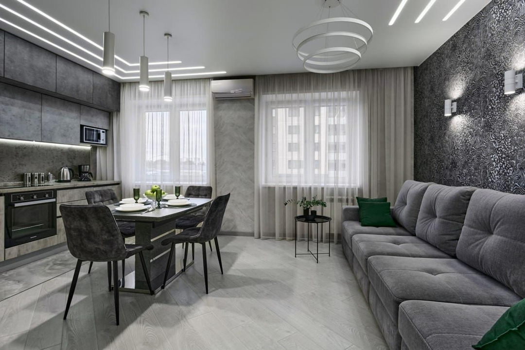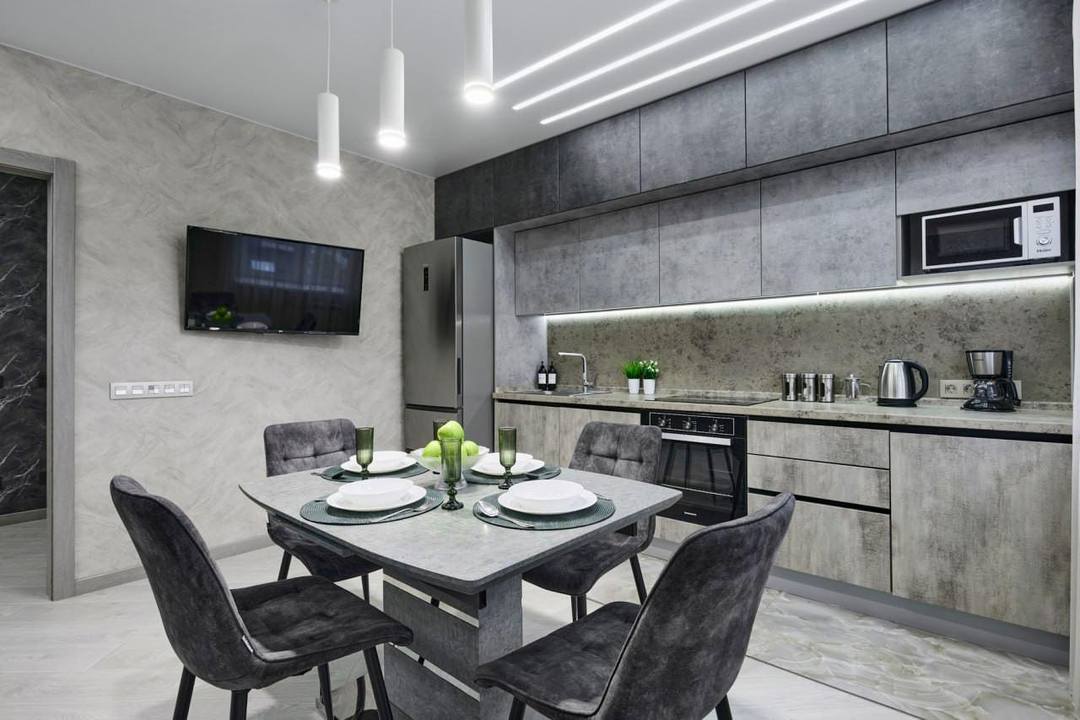 При продаже остается абсолютно всё, что видите на фото - отличный кухонный гарнитур с техникой, мягкая и встроенная мебель, шкафы.