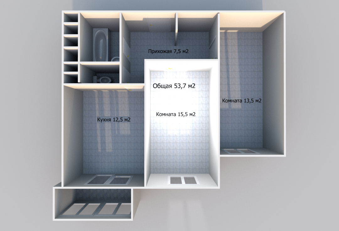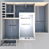 Квартира расположена на 5 этаже 12-ти этажного монолитно-кирпичного дома 2025 года постройки. Общая площадь квартиры 53,7 м2 (с лоджией 54,5 м2), жилая площадь 29 (15,5/13,5) м2, кухня-столовая 12,5 м2, из кухни выходит застекленная лоджия, СУ раздельный, имеется ниша под гардероб. Планировка – изолированная.