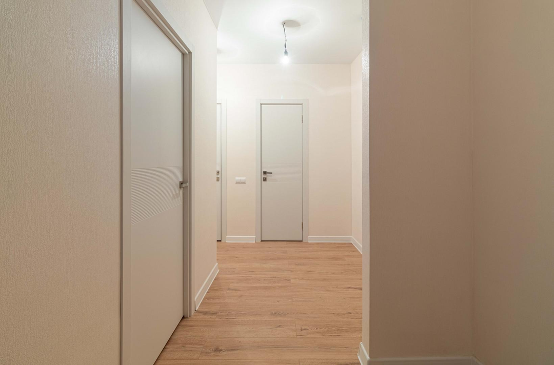 - поклеены современные обои под покраску, на полу ламинат 32 класса,