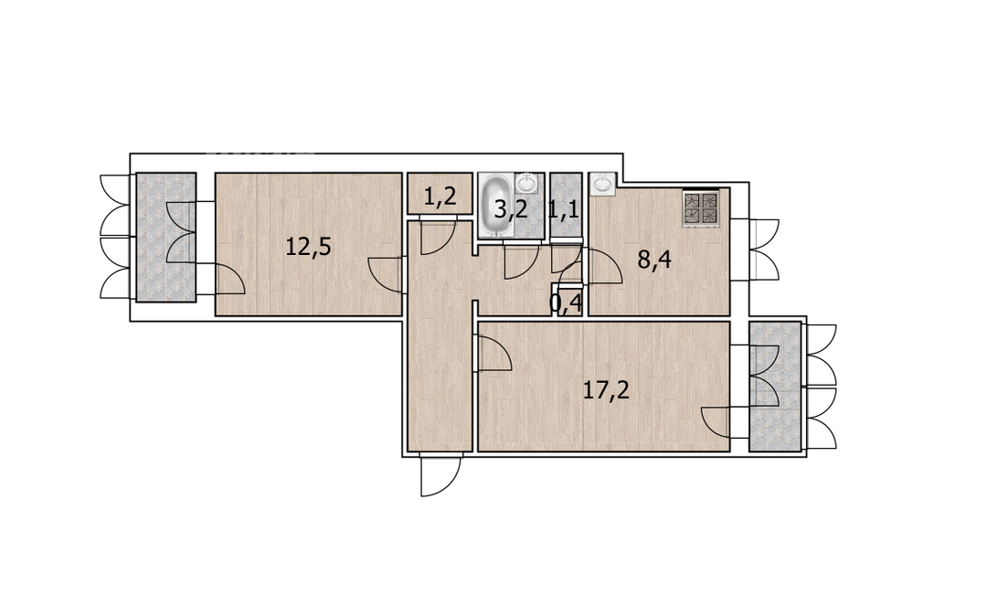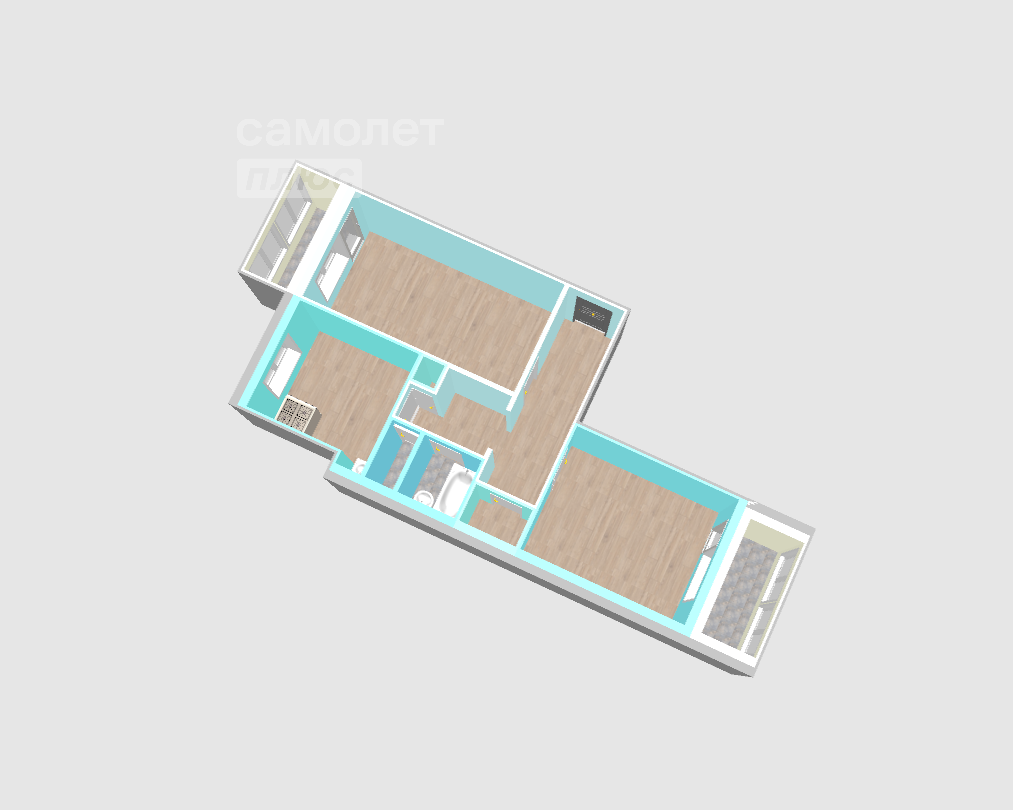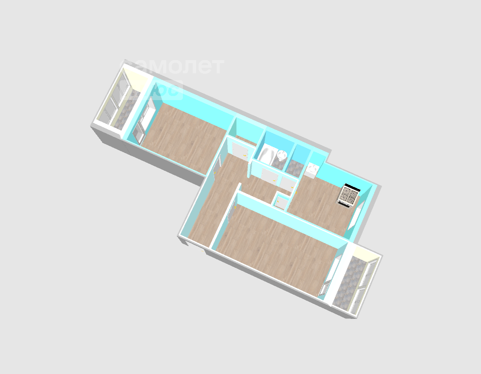 Ремонт сделан везде, кроме санузлов. Это позволяет объединить ванну и туалет, при желание, сделав санузел более просторным.