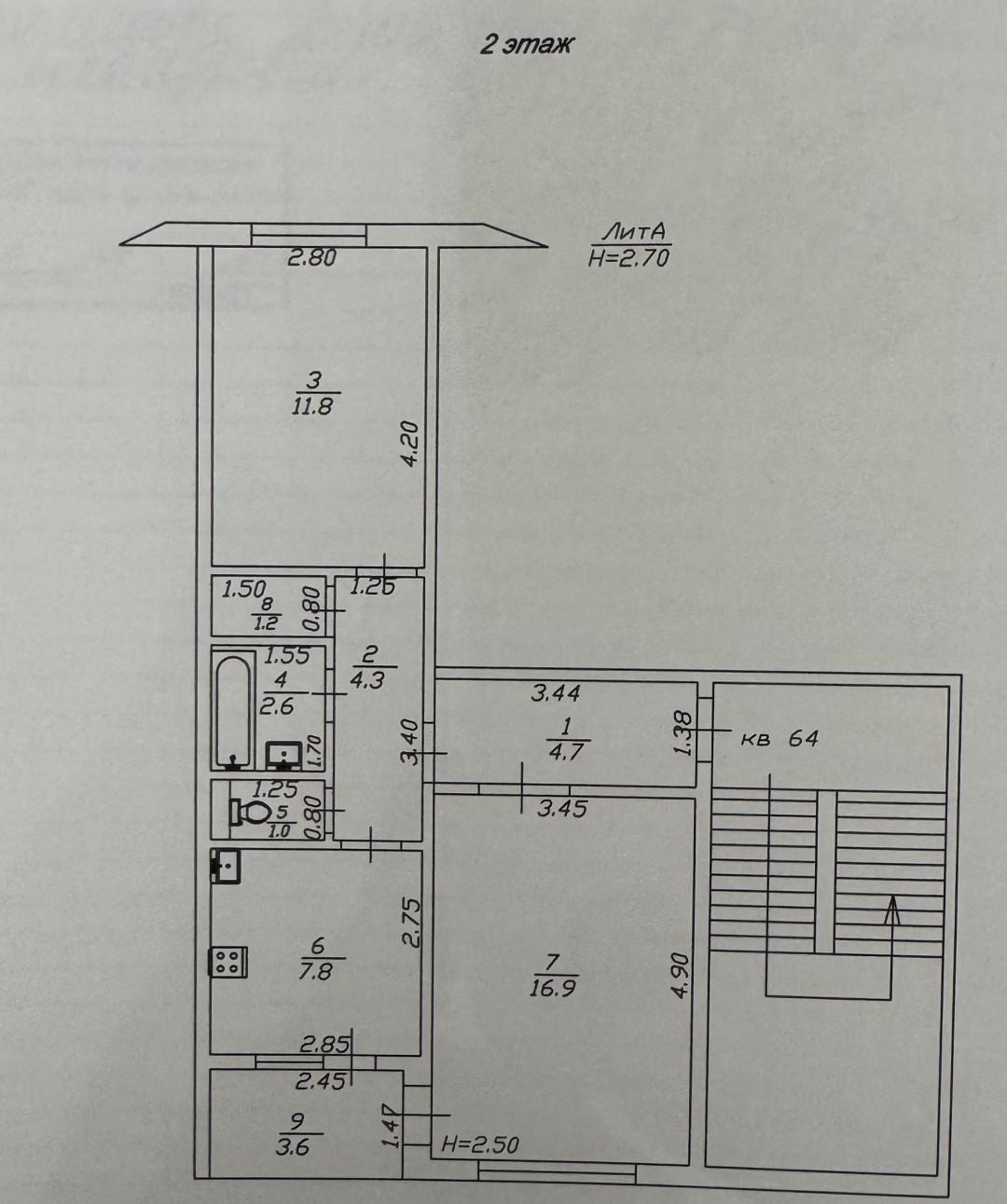 Общая площадь 53,9 м2.