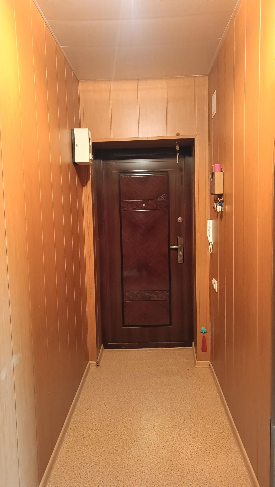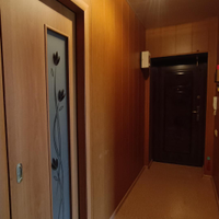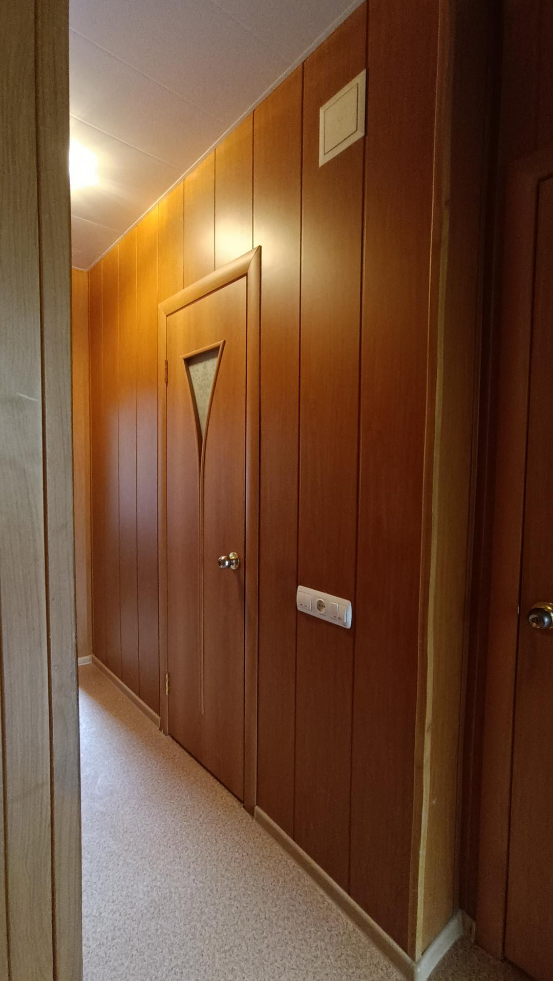 Большой коридор с выполненным в нём же встроенным кладовым помещением.
