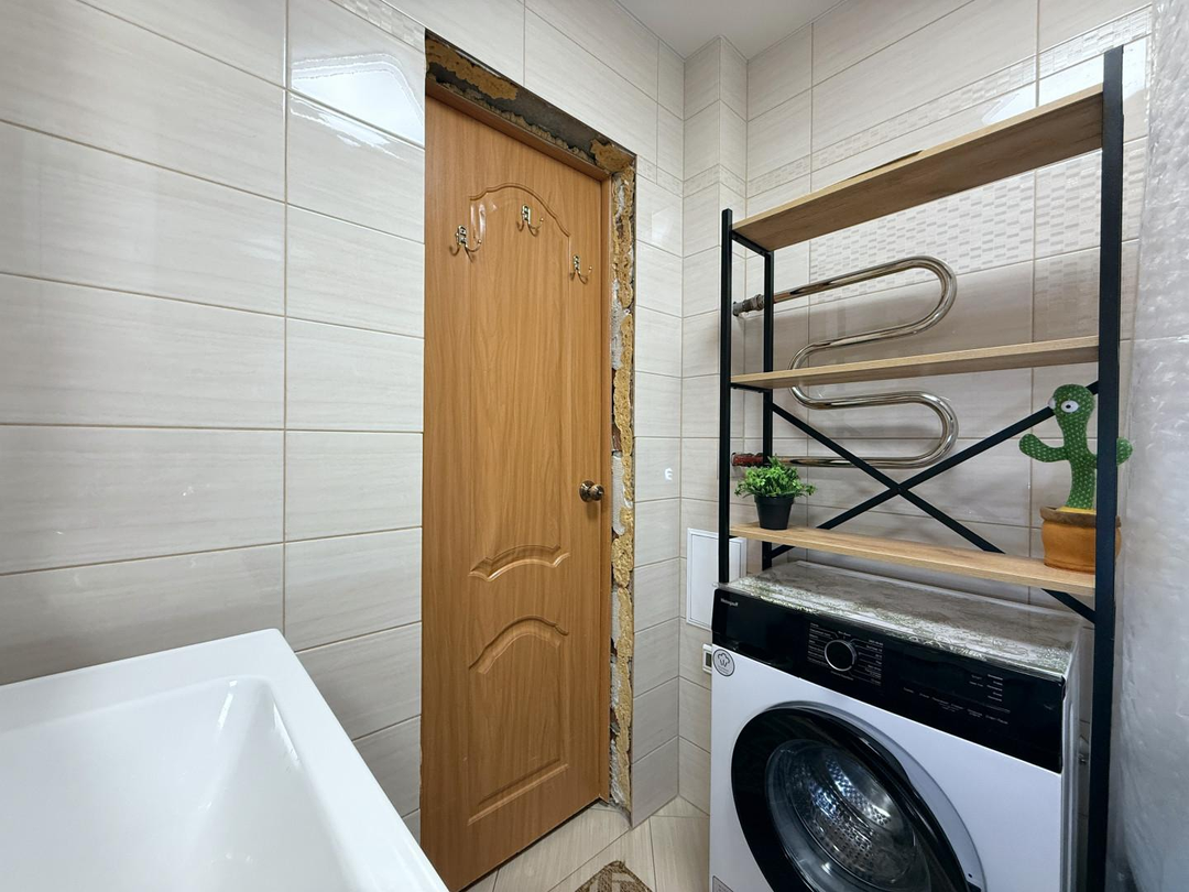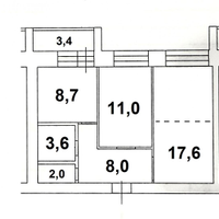 - В квартире выполнена перепланировка из 2-комнатной в 3-комнатную. Общая площадь всех помещений с учетом лоджии 54,1 кв.метров.