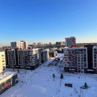 Квартира на последнем 12 этаже монолитного дома. Над квартирой есть техэтаж. Квартира угловая, на юго-восток. Окна выходят на пешеходный бульвар и на другие дома.