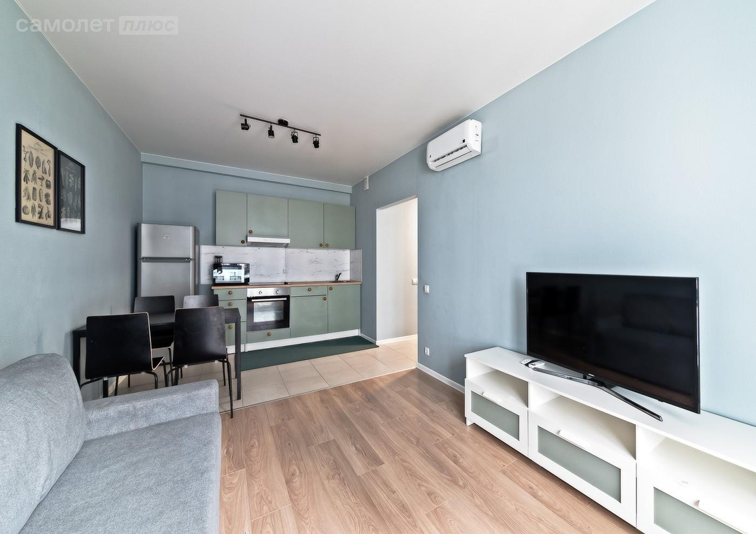 - Квартира расположена на 3 этаже, 25-ти этажного дома. Квартира формата евро-трешка, с кухонным гарнитуром + техника, кухня-гостиная меблирована (диван, обеденный стол +стулья, телевизор +тумба), спальня (2-х спальная кровать+ прикроватные тумбочки+ шкаф), прихожая оборудована мебелью, кондиционер, санузел совмещенный, гардеробная.