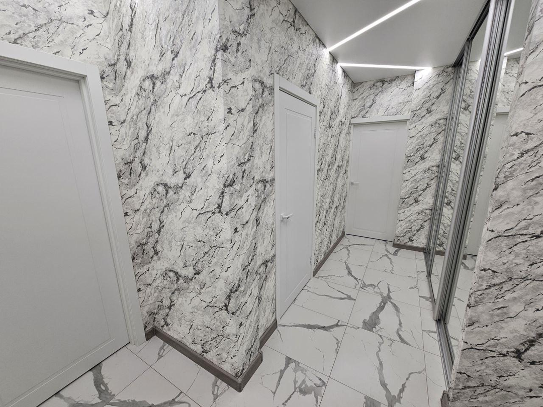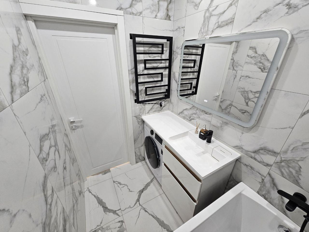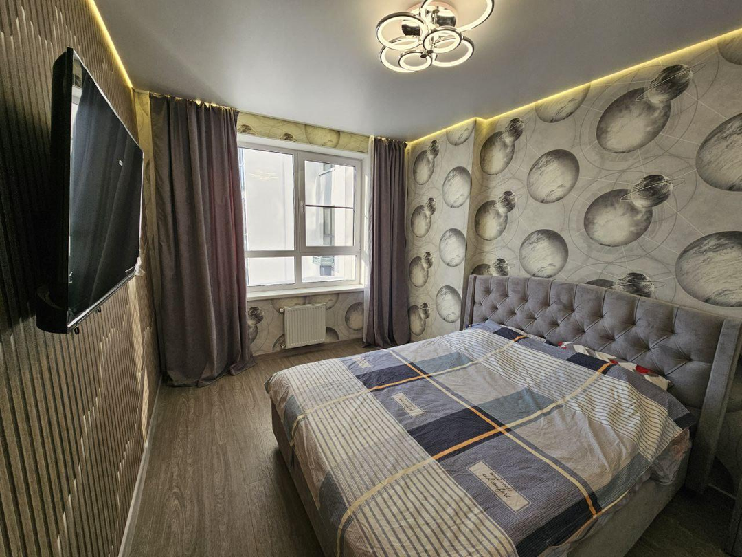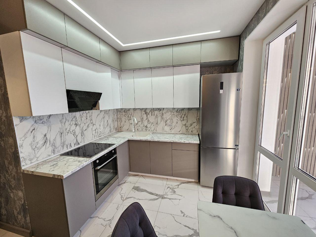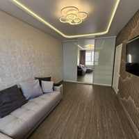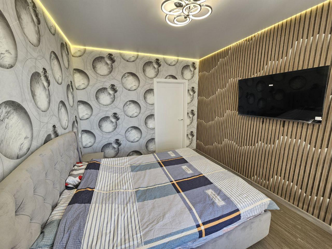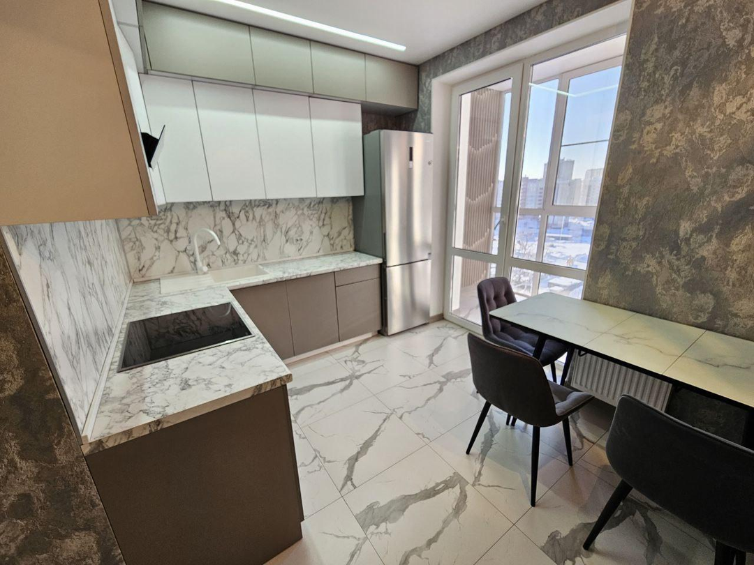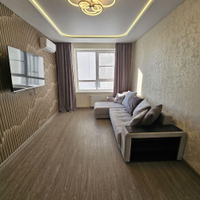 В квартире сделан современный ремонт:установлены межкомнатные двери;напольное покрытие-кварцвинил;натяжные потолки с светодиодным освещением;стены выровнены, флизелиновые обои;санузел в керамограните, акриловая ванна, раковина, тумба;в квартире установлен новый кухонный гарнитур с бытовой техникой;установлен тёплый пол.