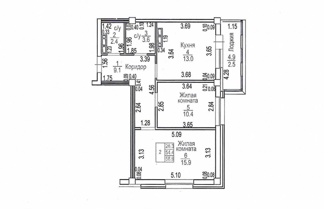 Квартира расположена нa 11 этаже 17 этажного дома, общей плoщaдью 54,4 кв. м. + площадь лоджии 4,9 кв.м.;