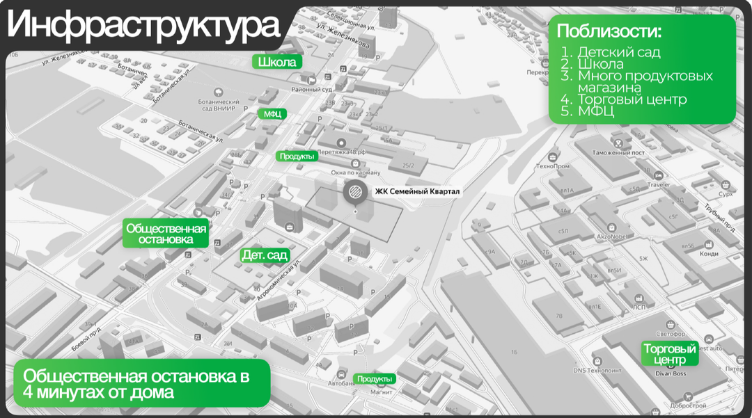 В шаговой доступности ДС и школа