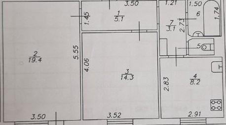 ◾ 5 этаж, 54,5 кв.м.