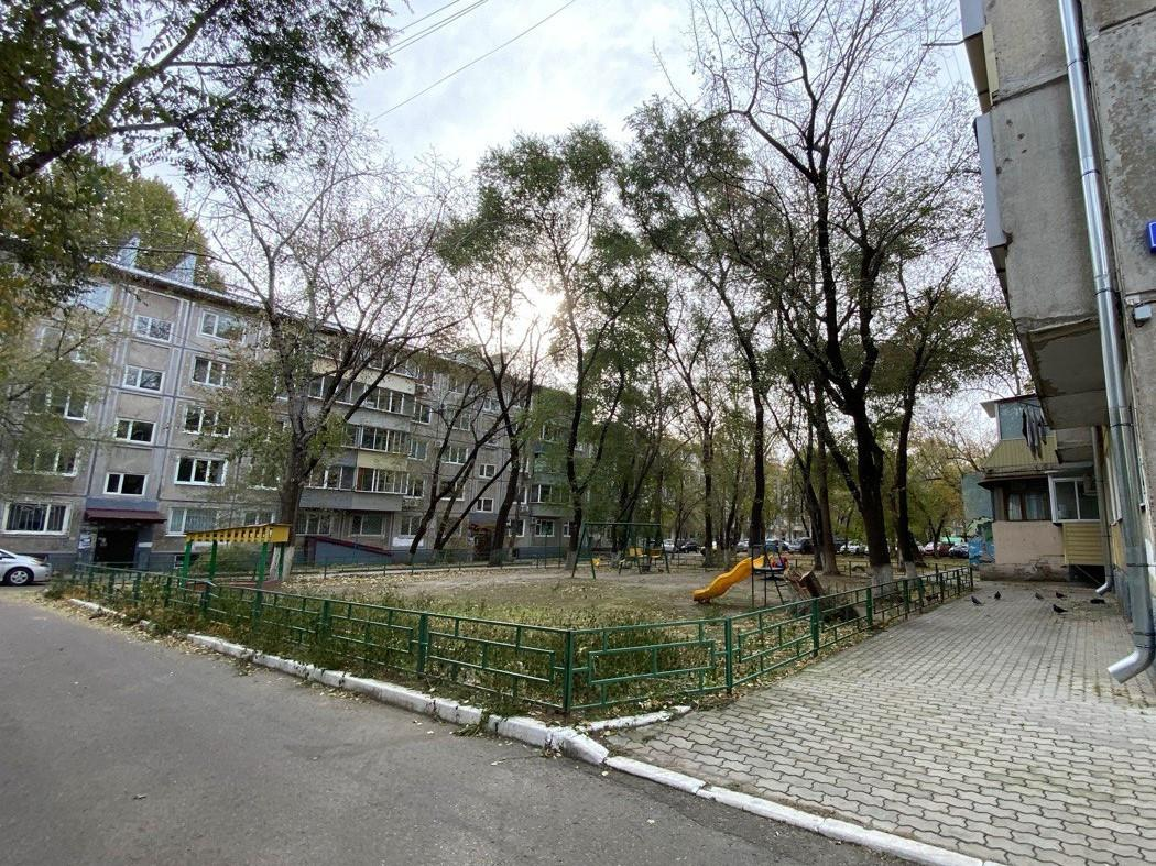 Прогулочные зоны. уютная тихая территория внутри квартала (во дворе много деревьев, детские площадки); сквер «Водников», в двух кварталах набережная р. Амур, территория ОКЦ.