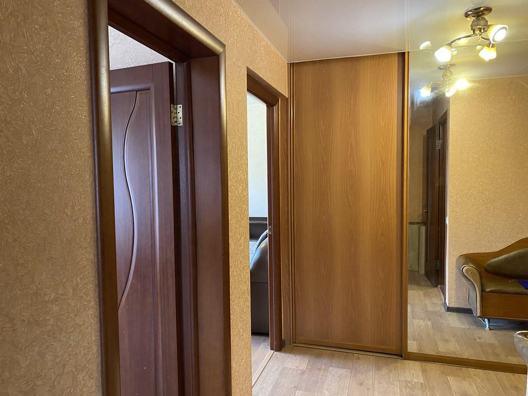 Удобная планировка. Большая прихожая и коридор, две смежные жилые комнаты, кухня-гостиная 12 м2, совмещённый санузел. Квартира на две стороны. Лоджия с выходом на комнату и кухню, застеклена стеклопакетами. Во всех окнах квартиры установлены москитные сетки.