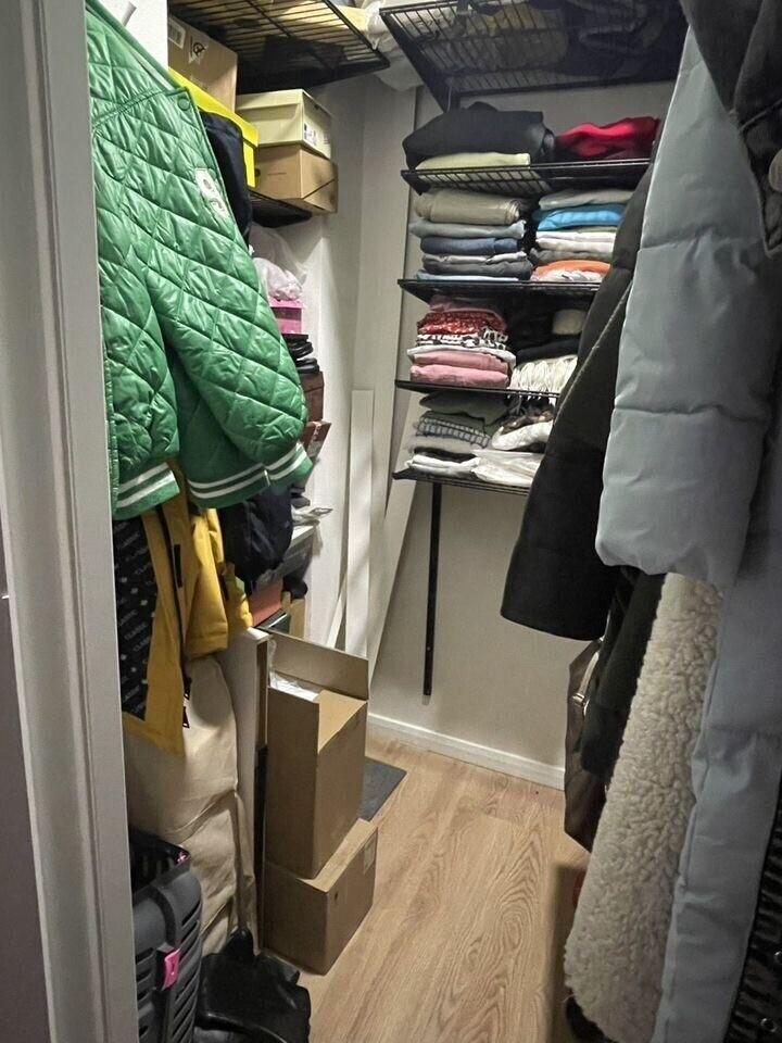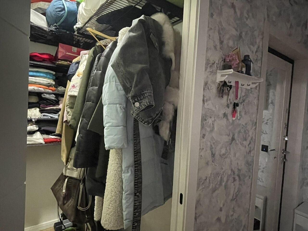 Гардеробная комната., квартира очень теплая, с выгодным расположением окон по сторонам света: утром солнце освещает зал, а вечером дарит уютный закат в спальне.